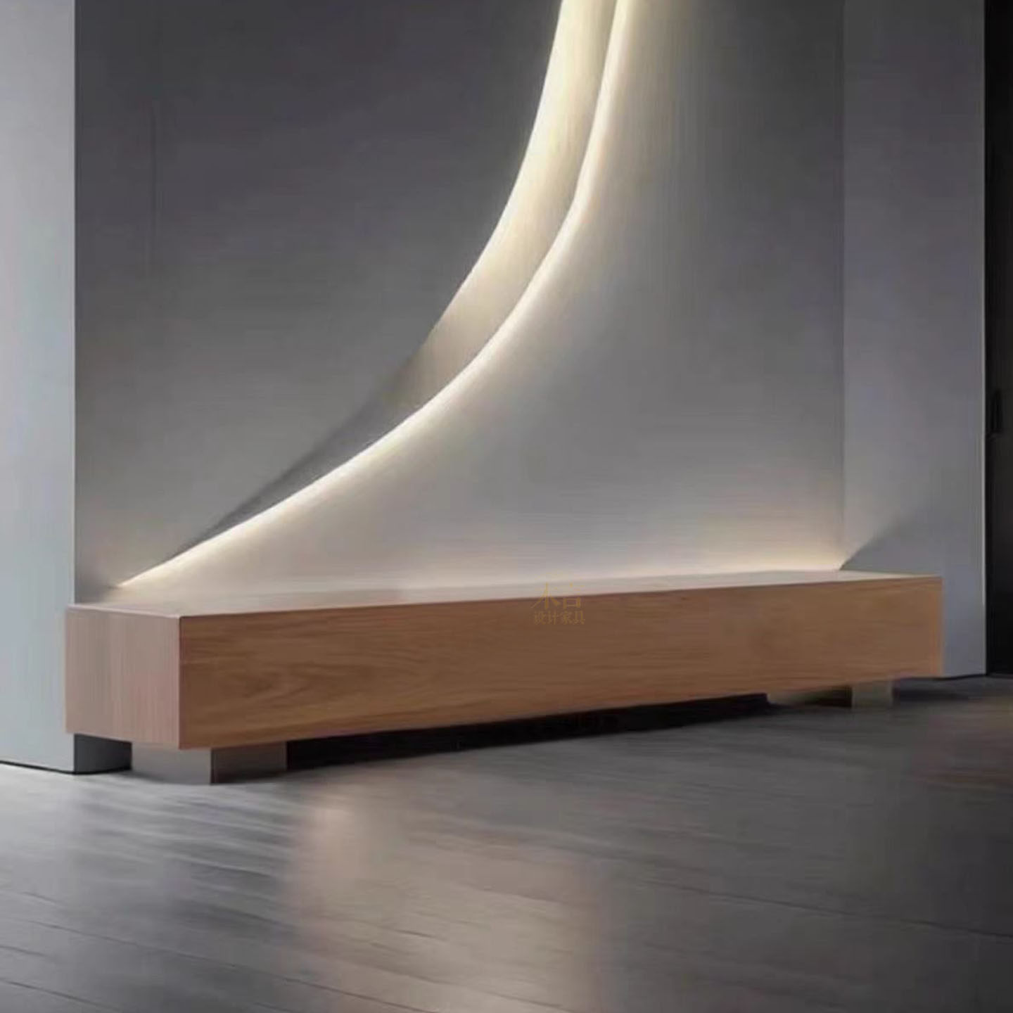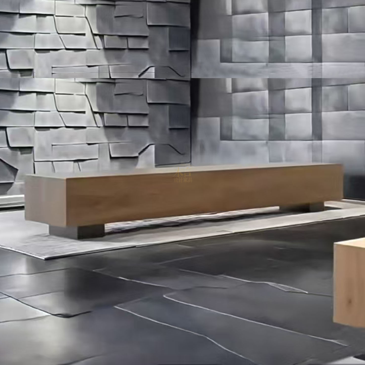 北欧简约实木长条凳商场会所等候区休息坐凳设计师款 架空层观景凳