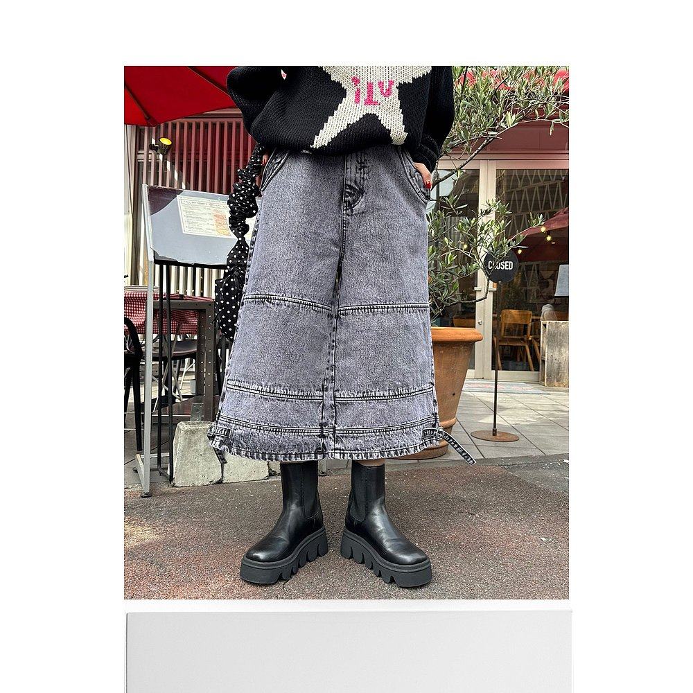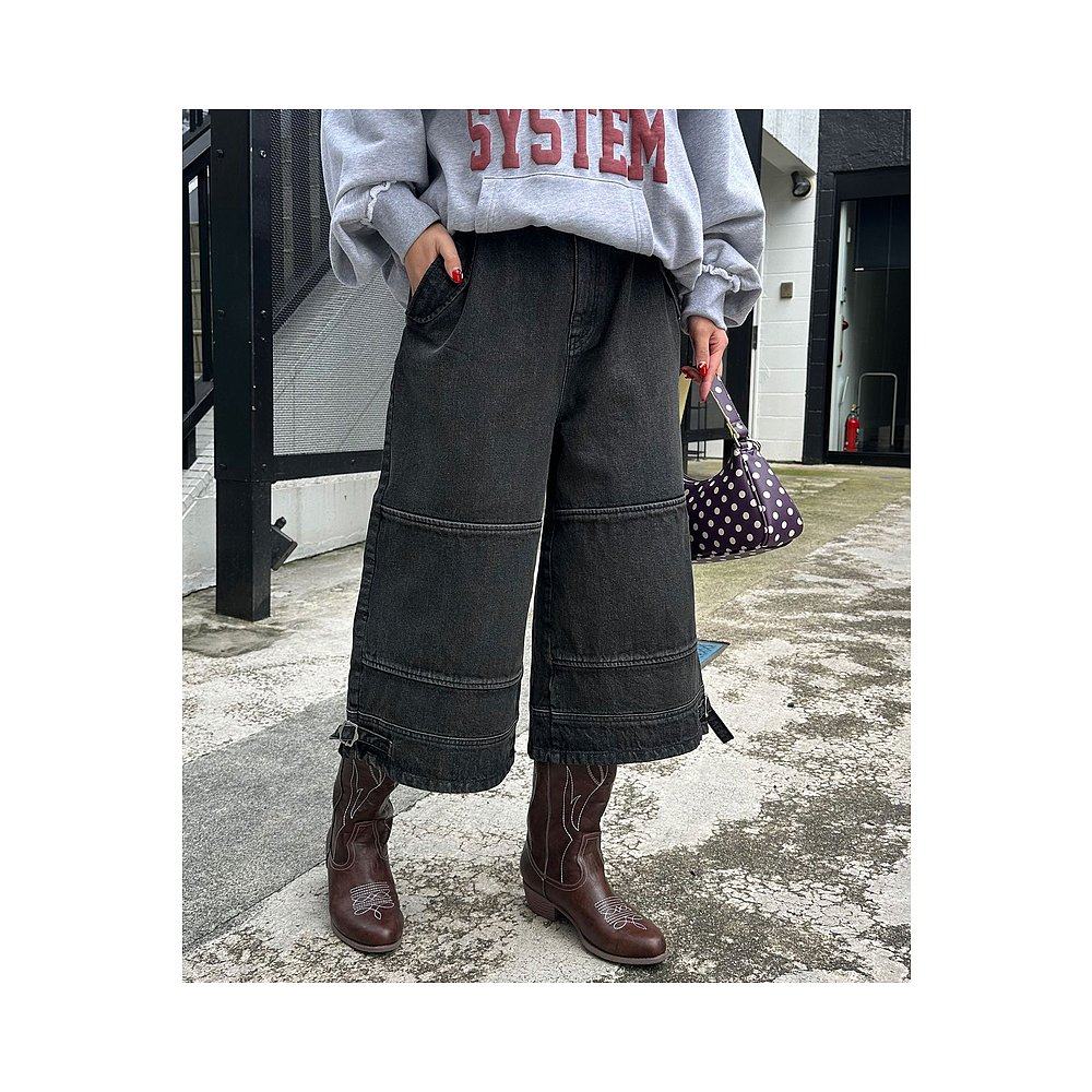 秋 街头百搭中腰微弹宽松阔腿裤 MEDM 花藤激光烧花休闲弯刀牛仔裤