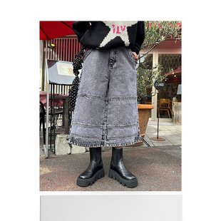 女 百搭宽松阔腿裤 猫猫家加长女裤 秋冬加绒加厚雅痞直腰抓须牛仔裤