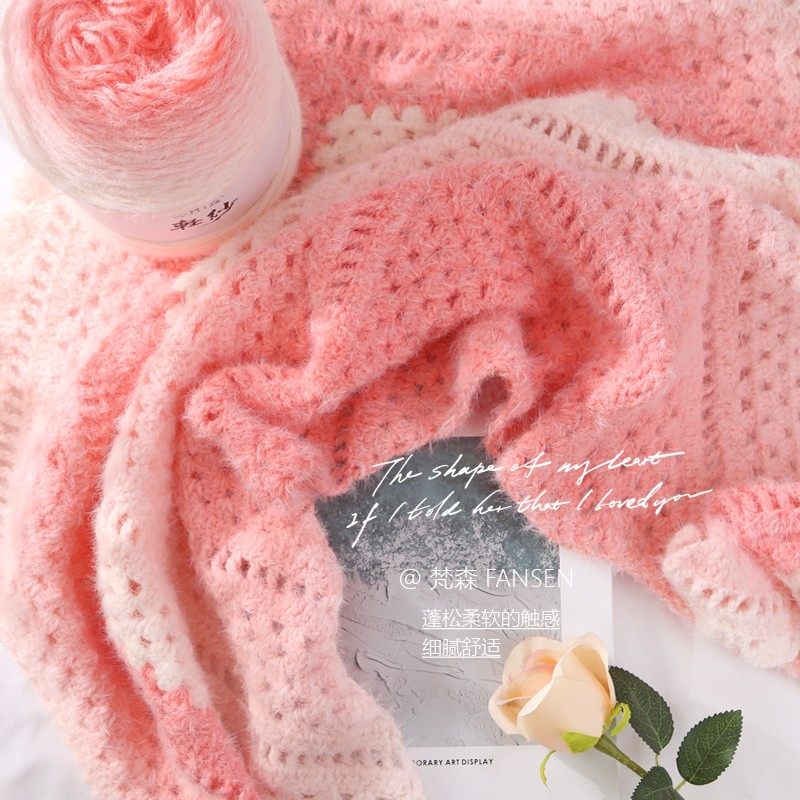 轻纱渐变长绒羽毛线七星毯渐变羊毛diy手工编织帽子围巾花束毯子