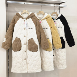 女套装 尹姿恋舒适奶泡绒夹棉加厚保暖长款 家居服睡衣6072 新品 冬季