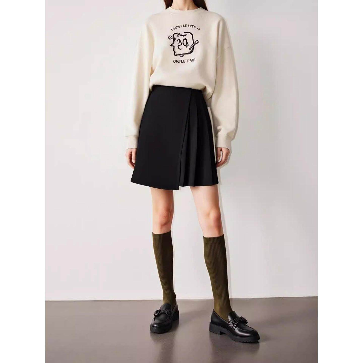 设计感高腰短裙 百家好黑色不规则半身裙女士2026春季 Basic House
