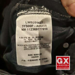 LWB2514273YS00F Lee正品 黑灰色微喇牛仔裤 女款 A08455 2025春季