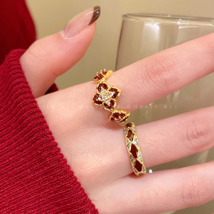 素圈叠戴戒指组合女轻奢小众设计高级感韩系指环装 饰可调节食指戒