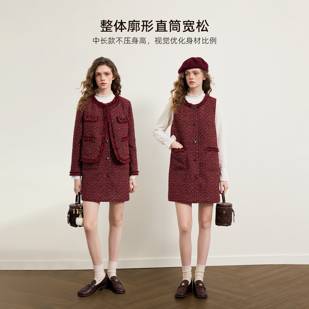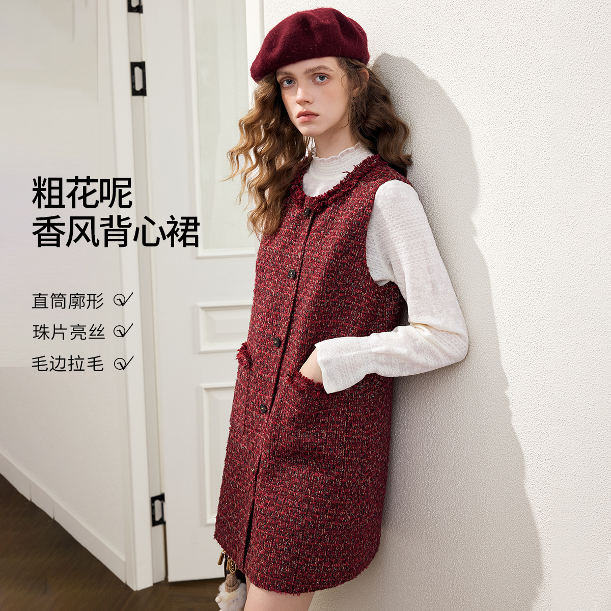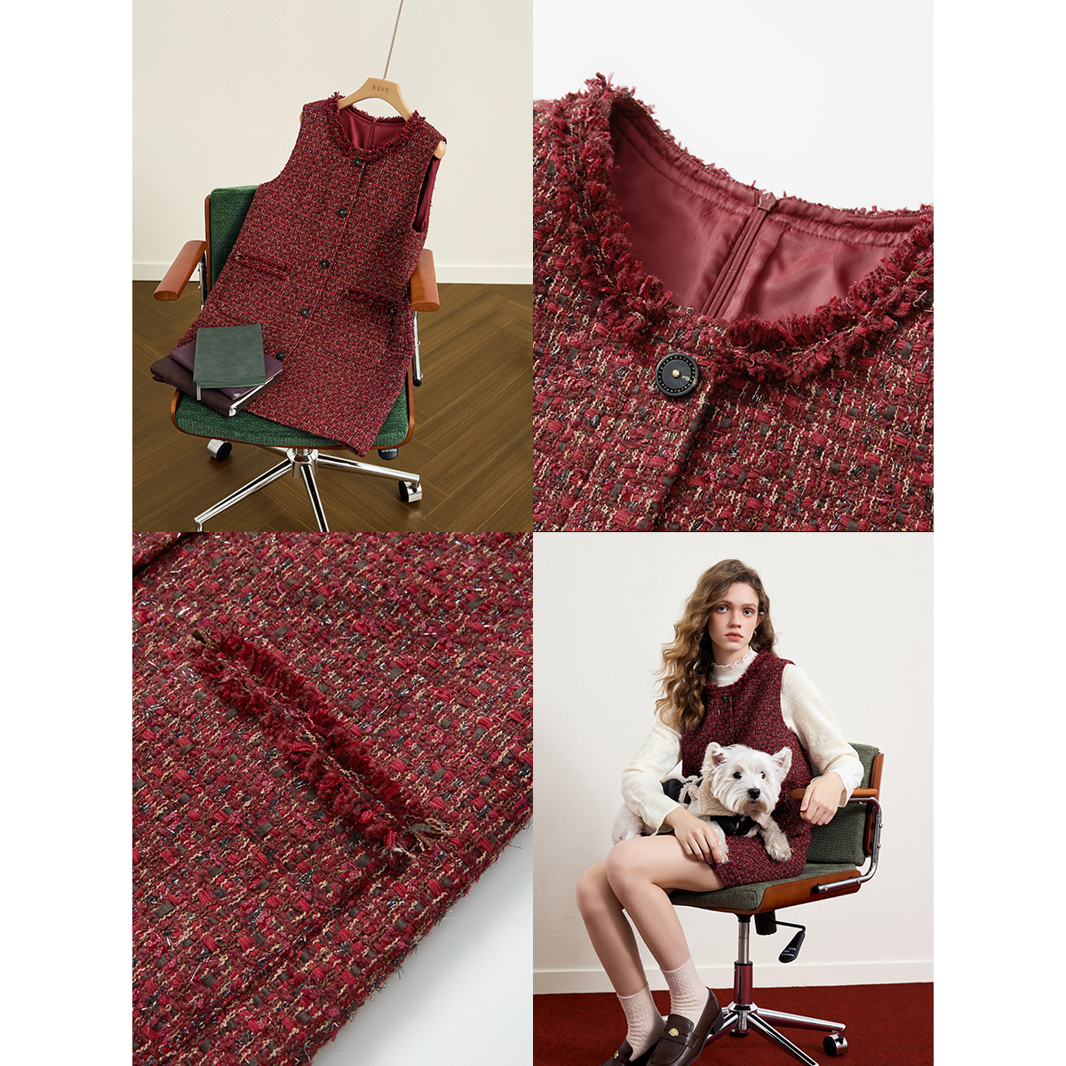 Even一雯 韩系高智感小香风连衣裙女秋冬背心吊带裙 抹茶可露丽