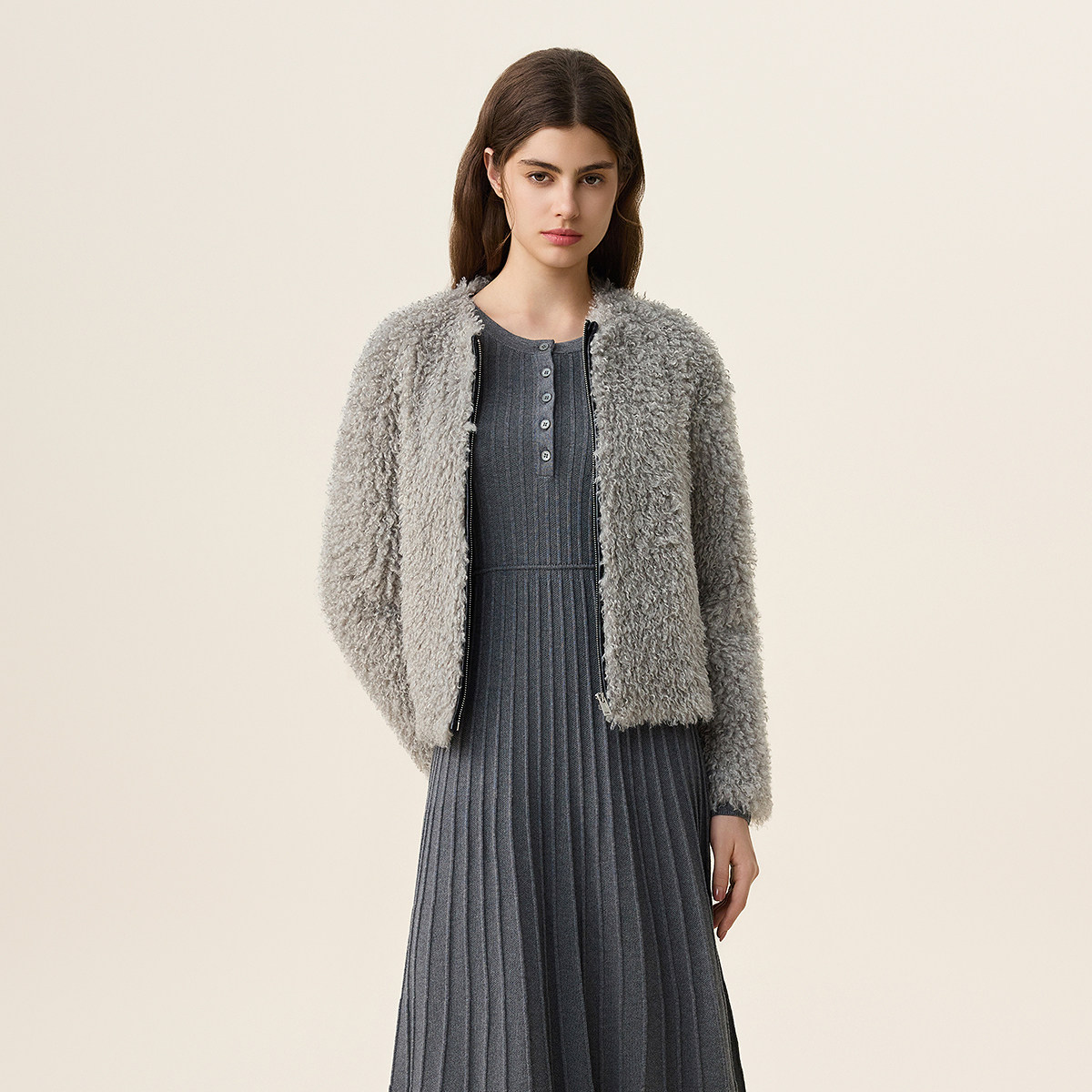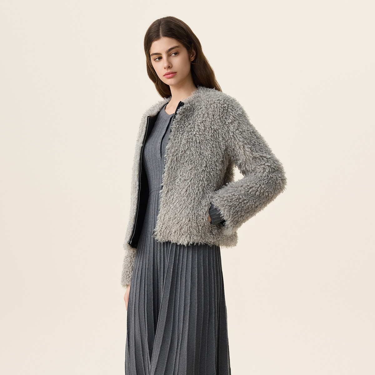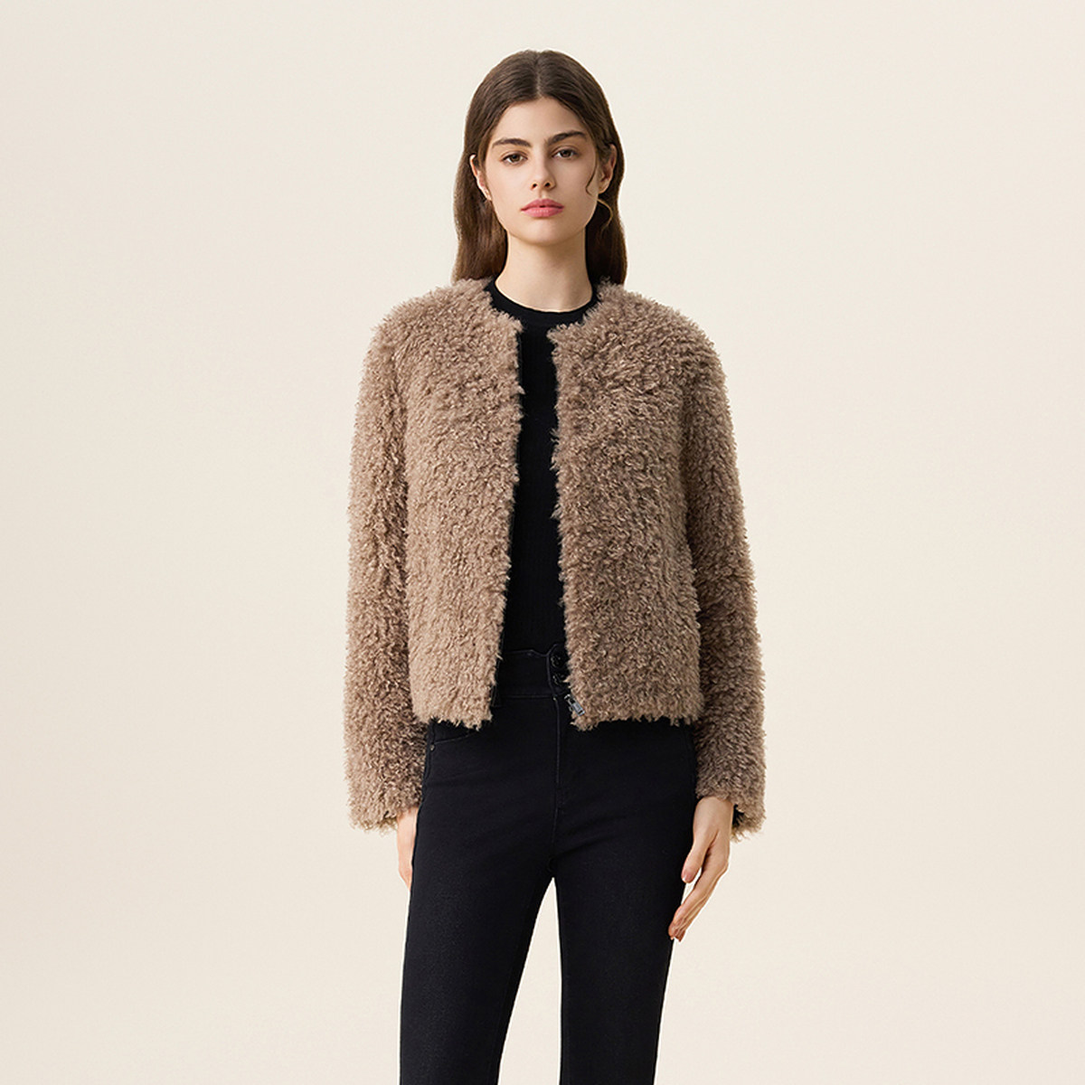 女春装 FIVE PLUS颗粒绒毛毛外套女通勤环保皮草软糯毛感2026新款