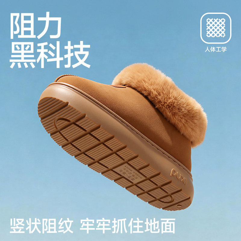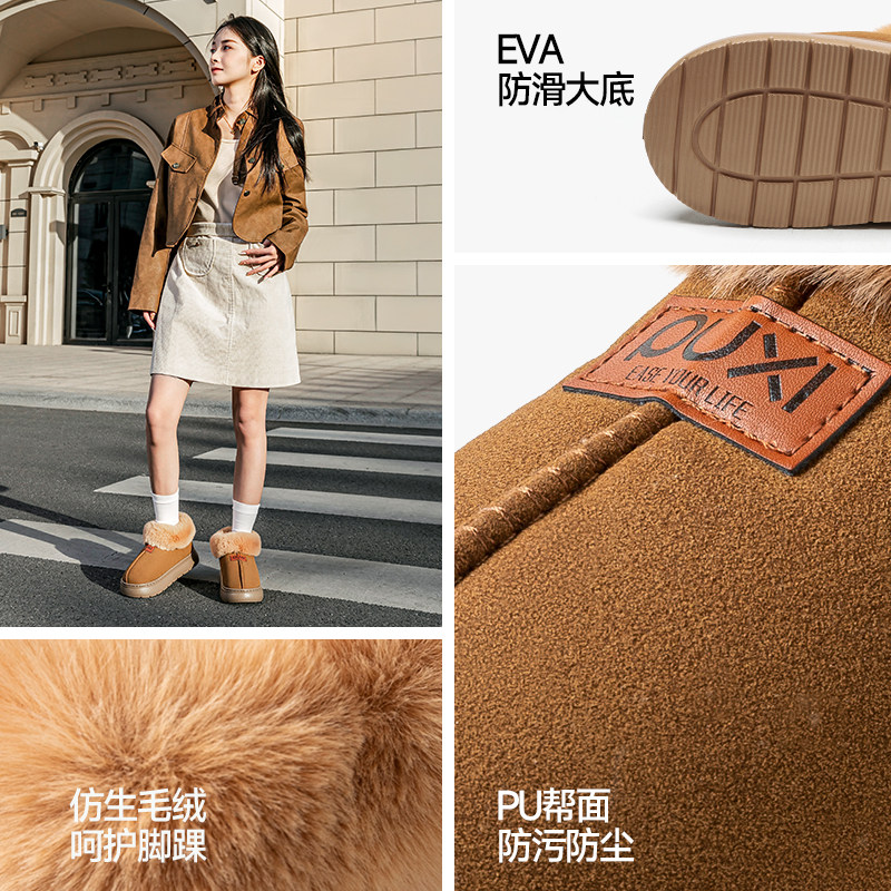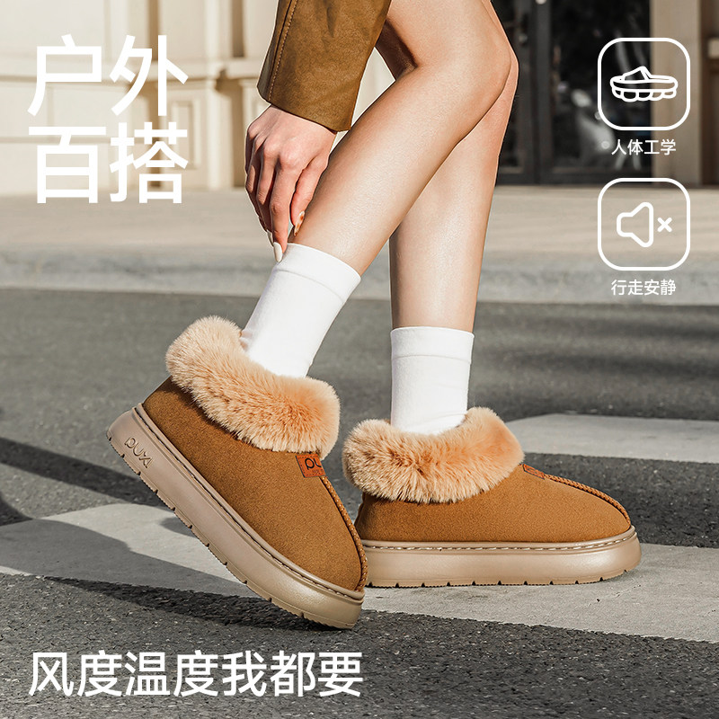 加绒加厚外穿保暖防滑 女士家居雪地靴冬季 朴西包跟棉拖鞋 2025新款