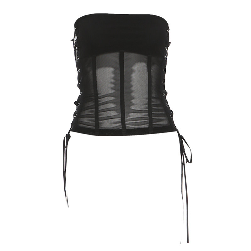 怪诞女孩 毛毛半身裙两件套 暗黑系甜酷网纱绑带抹胸背心高腰修身