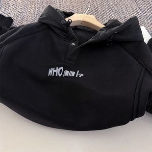 190中大童一体绒卫衣青少年加厚连帽套头衫 150 绒 贴身面是暖糯