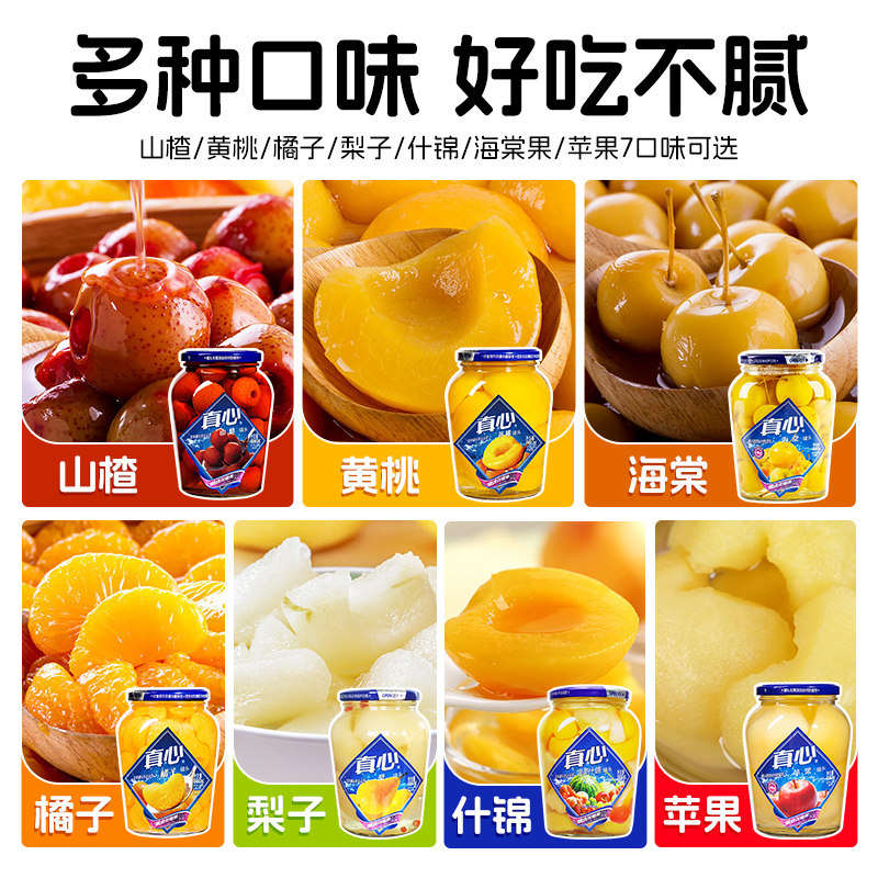 真心黄桃罐头880g 2瓶橘子山楂什锦水果糖水罐头整箱东北年货零食