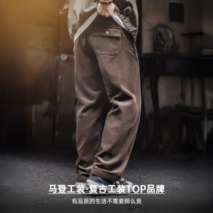咖色加厚直筒垂感阔腿长裤 复古灯芯绒休闲裤 子男秋冬 美式 马登工装