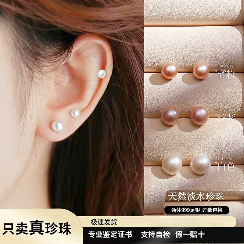 Z小姐999纯银豆豆耳环养耳洞睡觉免摘耳钉2025新款 小众耳饰女 爆款