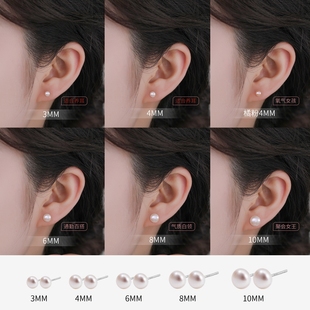 京润珍珠 倾心百搭正圆淡水耳钉天然淡水珍珠耳饰生日礼物送闺蜜D