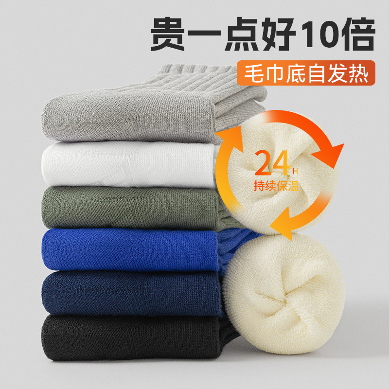 防臭吸汗厚保暖袜 毛圈加绒加厚长筒袜子冬季 雅鹿中筒袜10双装 男士