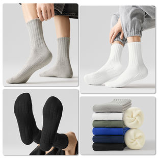 中筒袜保暖防臭羊绒棉冬天长袜 加绒厚款 羊毛袜子男士 美利奴秋冬季