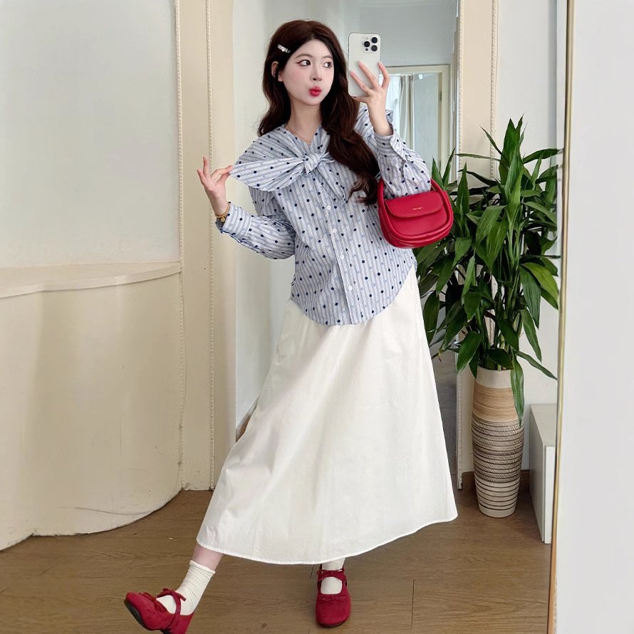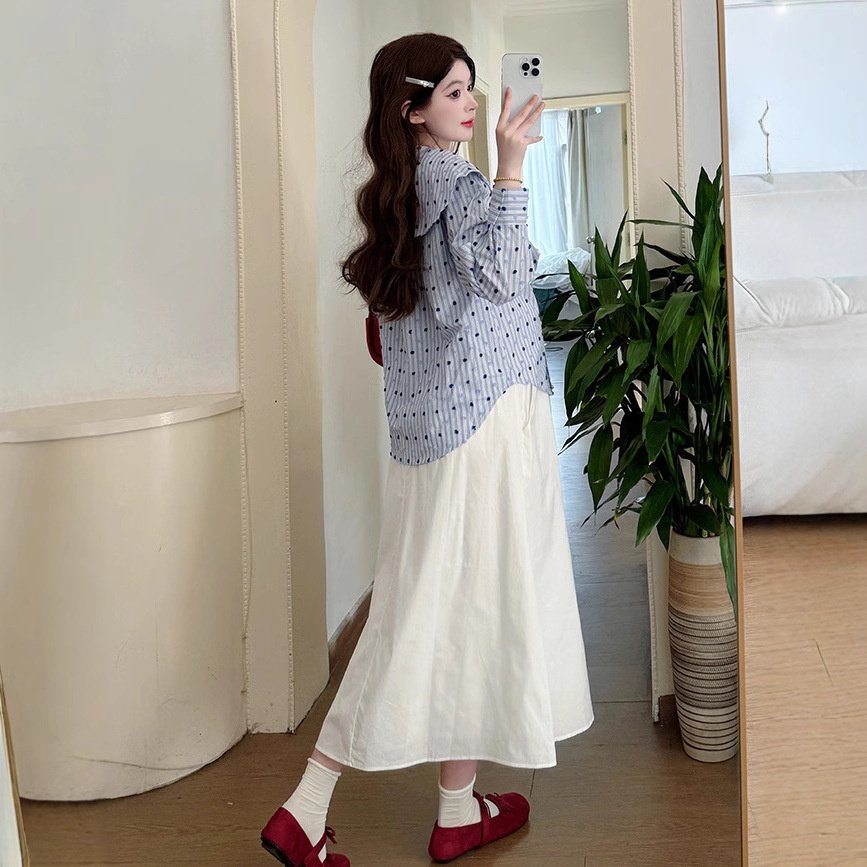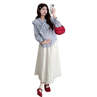 减龄海军领宽松刺绣衬衣 韩版 托腹半身裙潮 2025春夏新款 孕妇套装