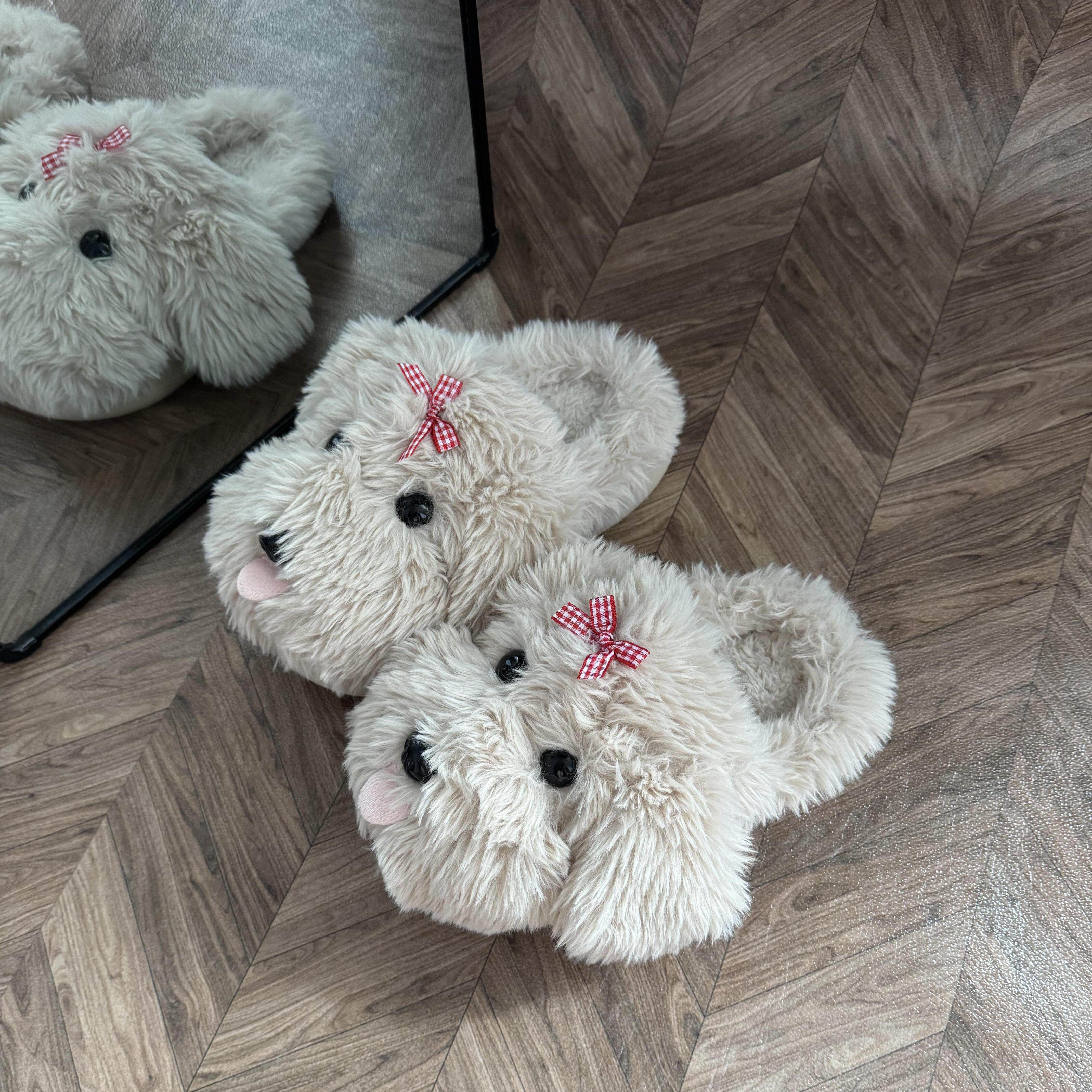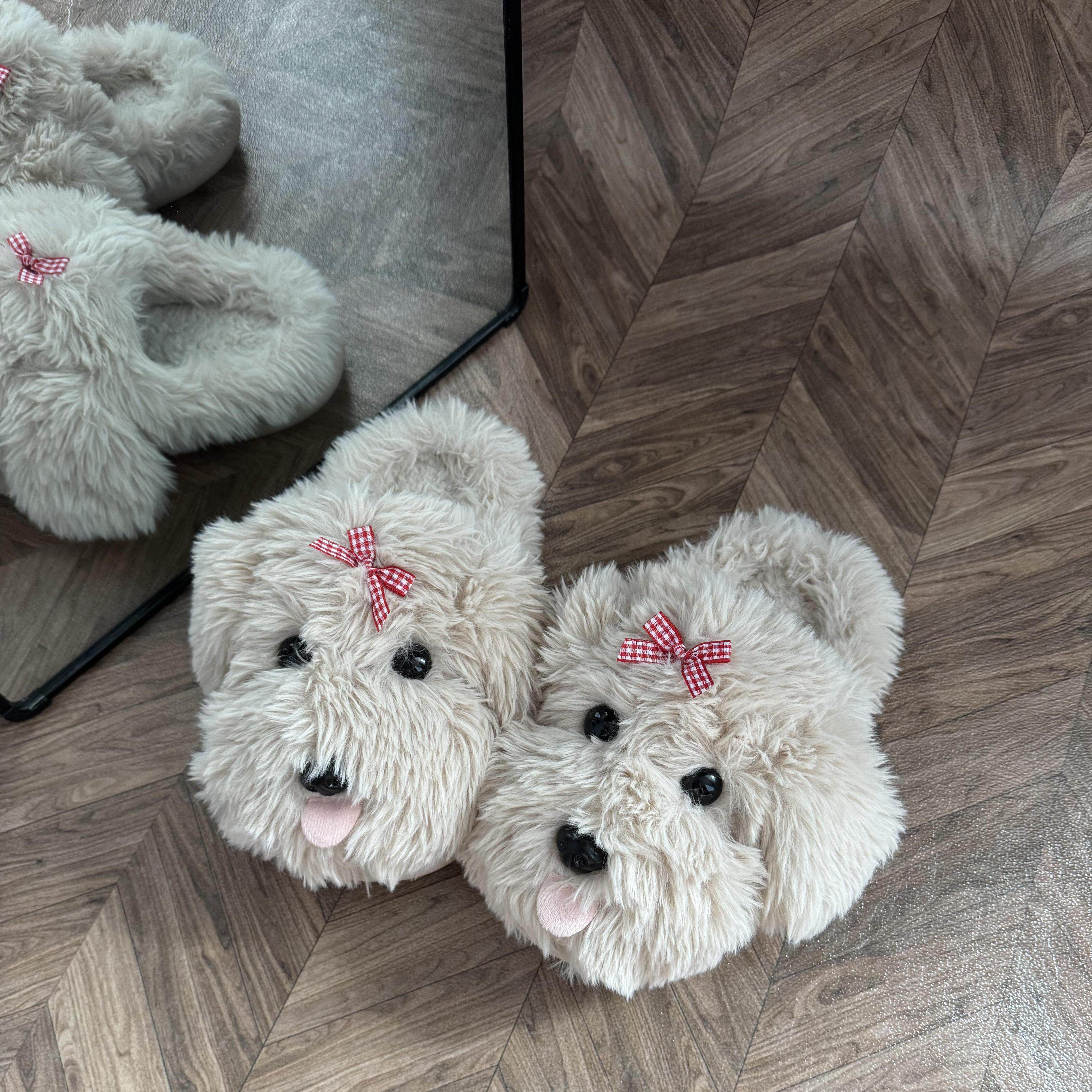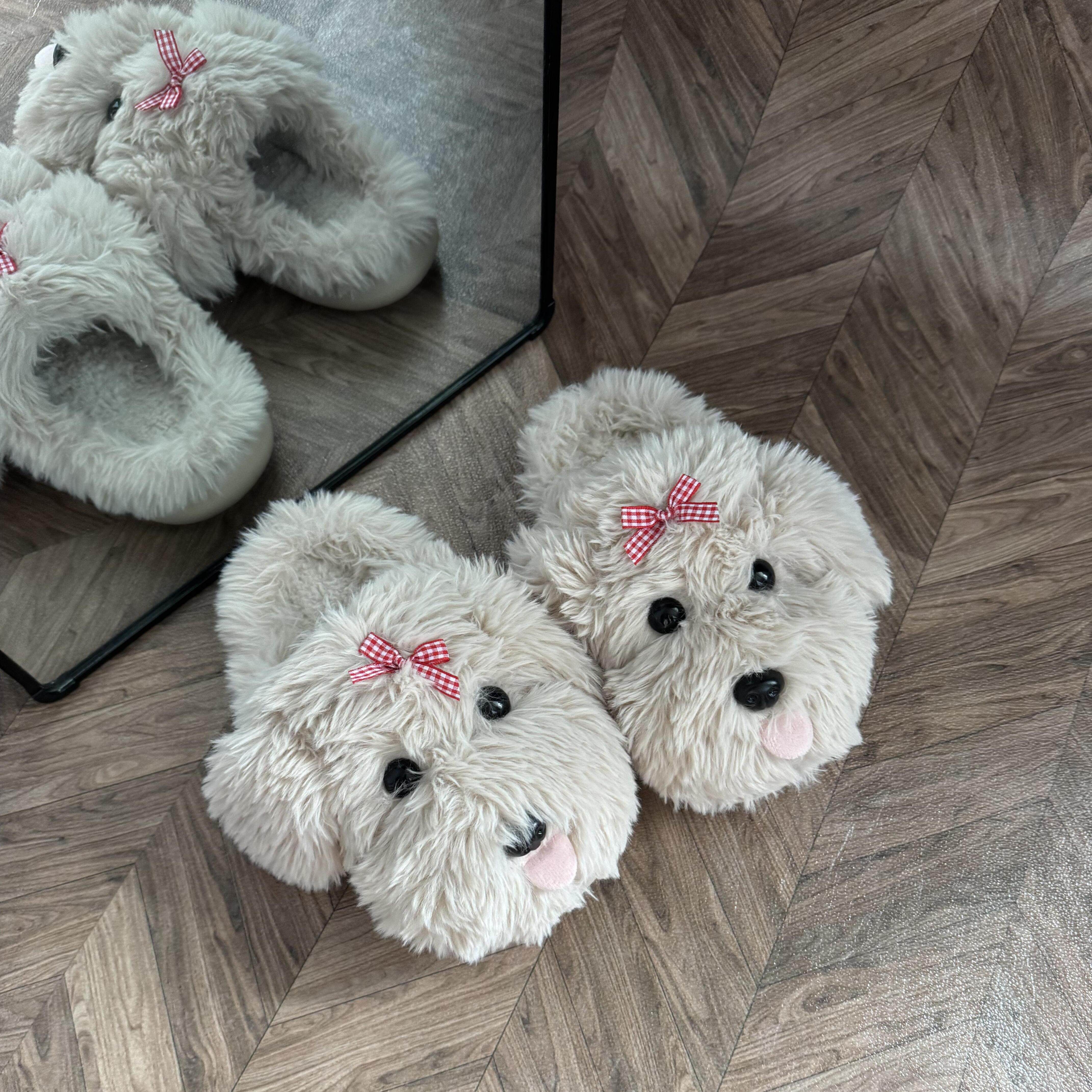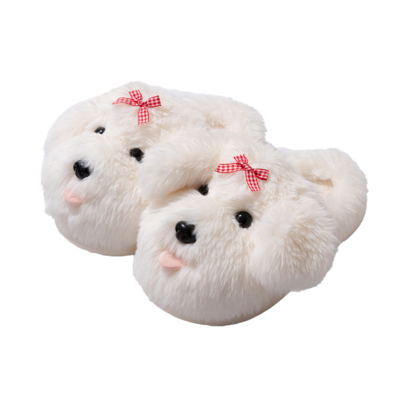 毛绒茸茸厚底防滑可爱家居室内保暖拖鞋 冬季 2025新 女款 小狗棉拖鞋