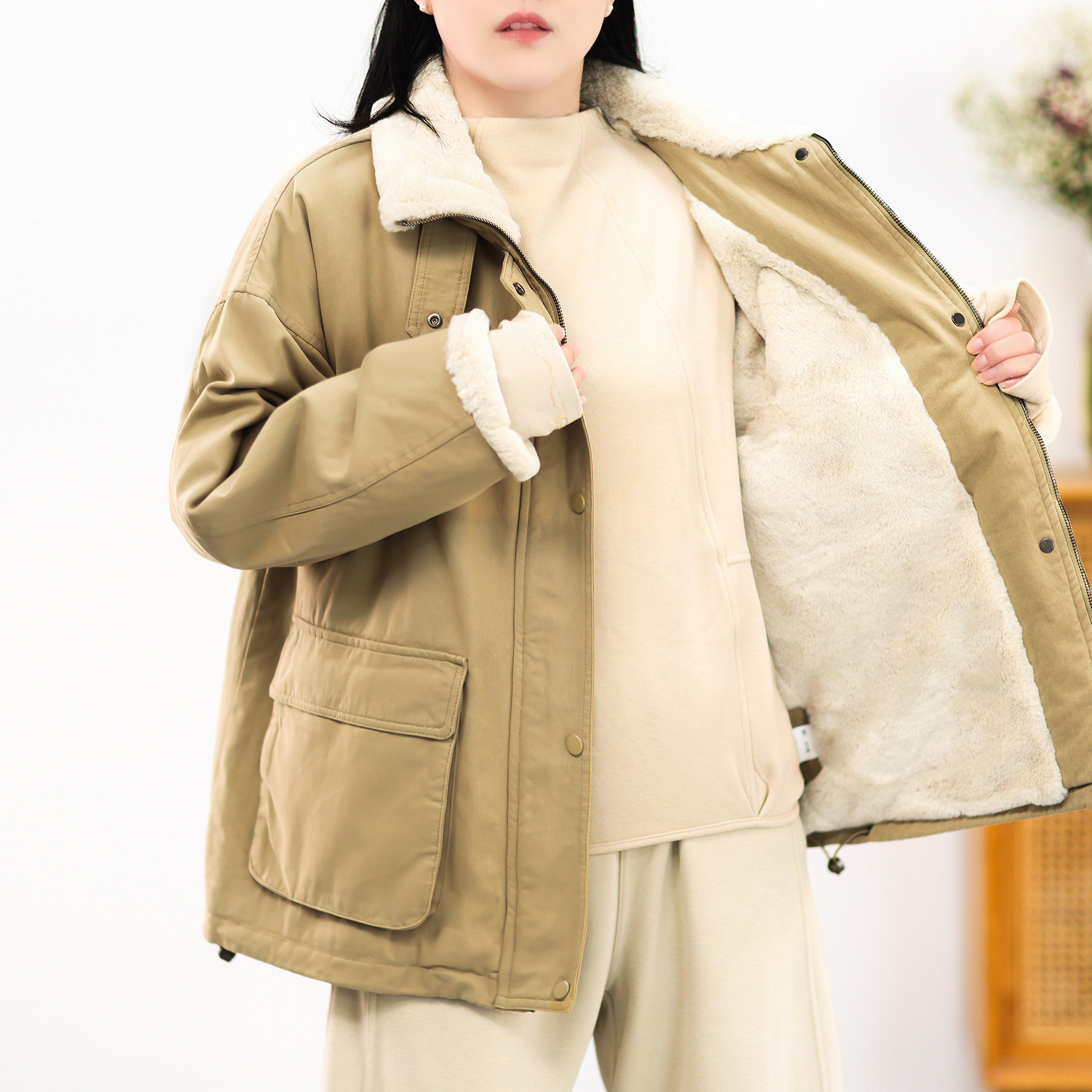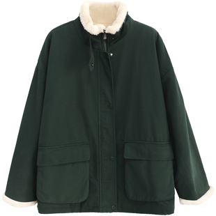 大口袋大码 复古兔毛工装 都市游牧立领加绒派克服棉衣外套冬 11新