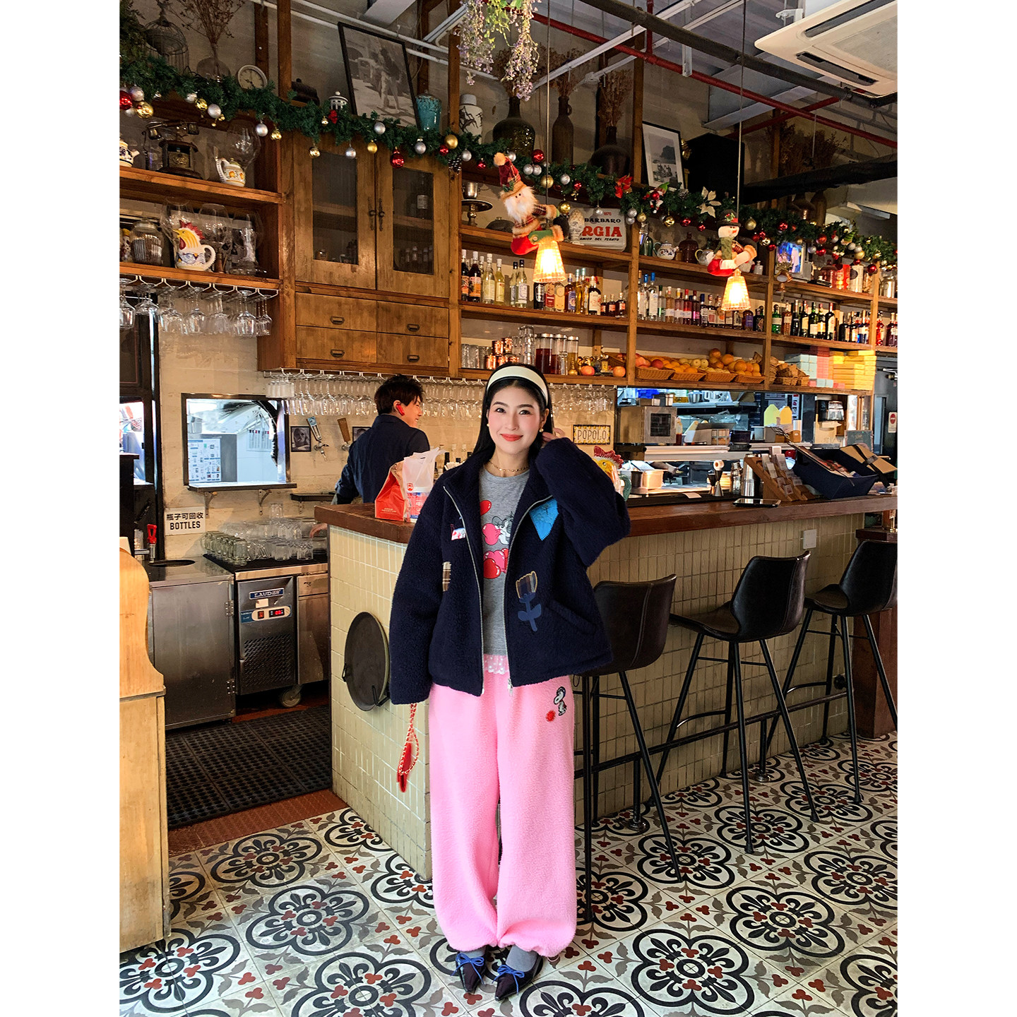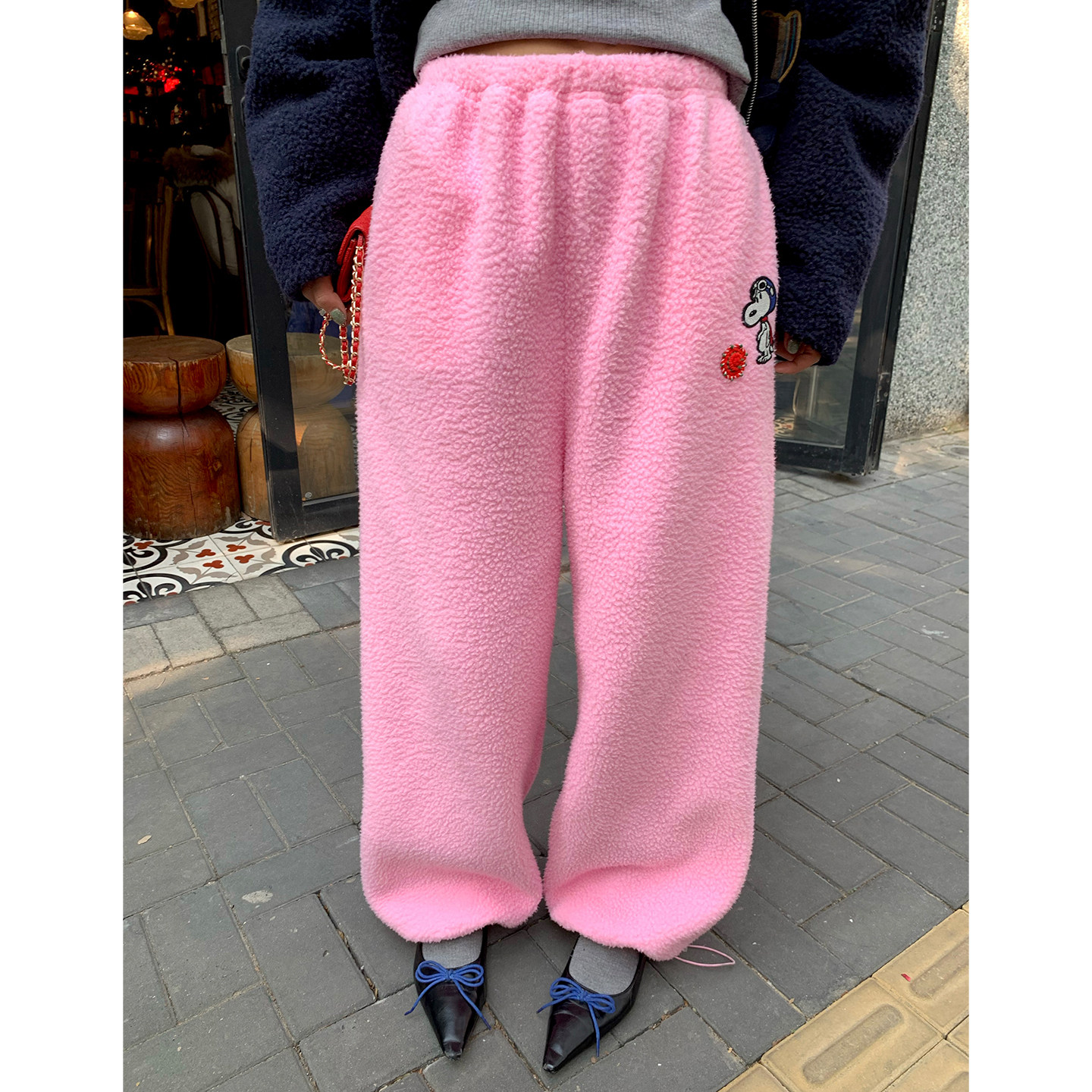 设计感小众松紧腰保暖 冬粉色小个子束脚裤 今屿花花裤 子女2025新款