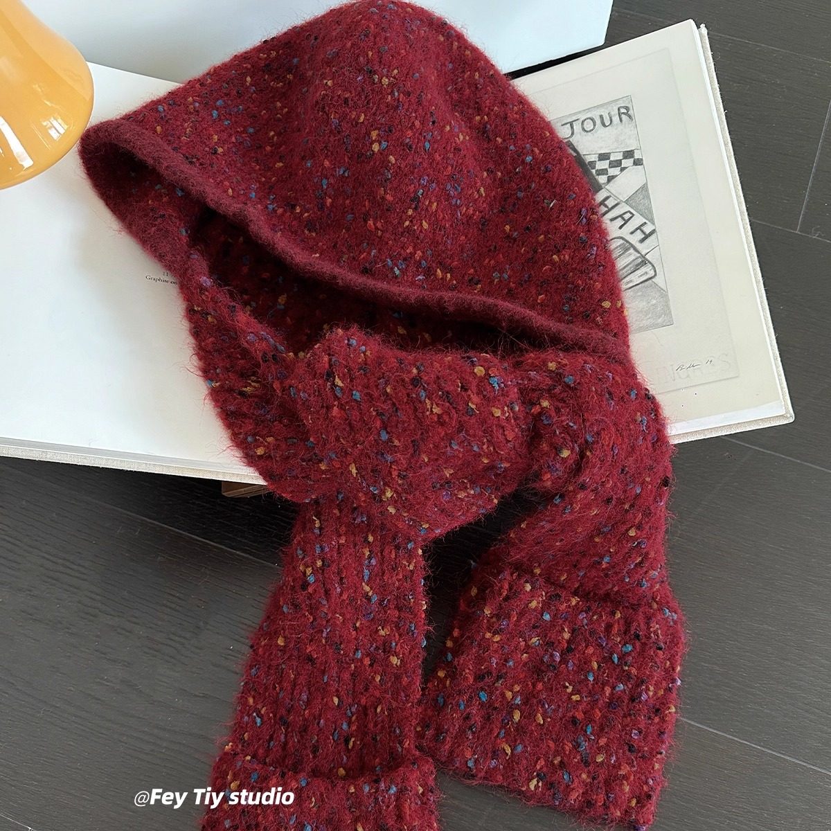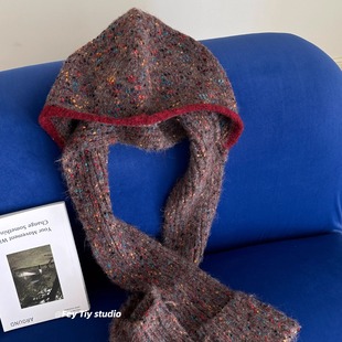 feytiy 秋冬加厚保暖包头帽围巾一体护耳帽 时髦复古巴拉克拉法帽
