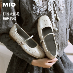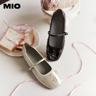 MIO米奥女鞋 子单鞋 玛丽珍2026新款 铆钉钻芭蕾舞鞋 皮鞋 孙乐言同款