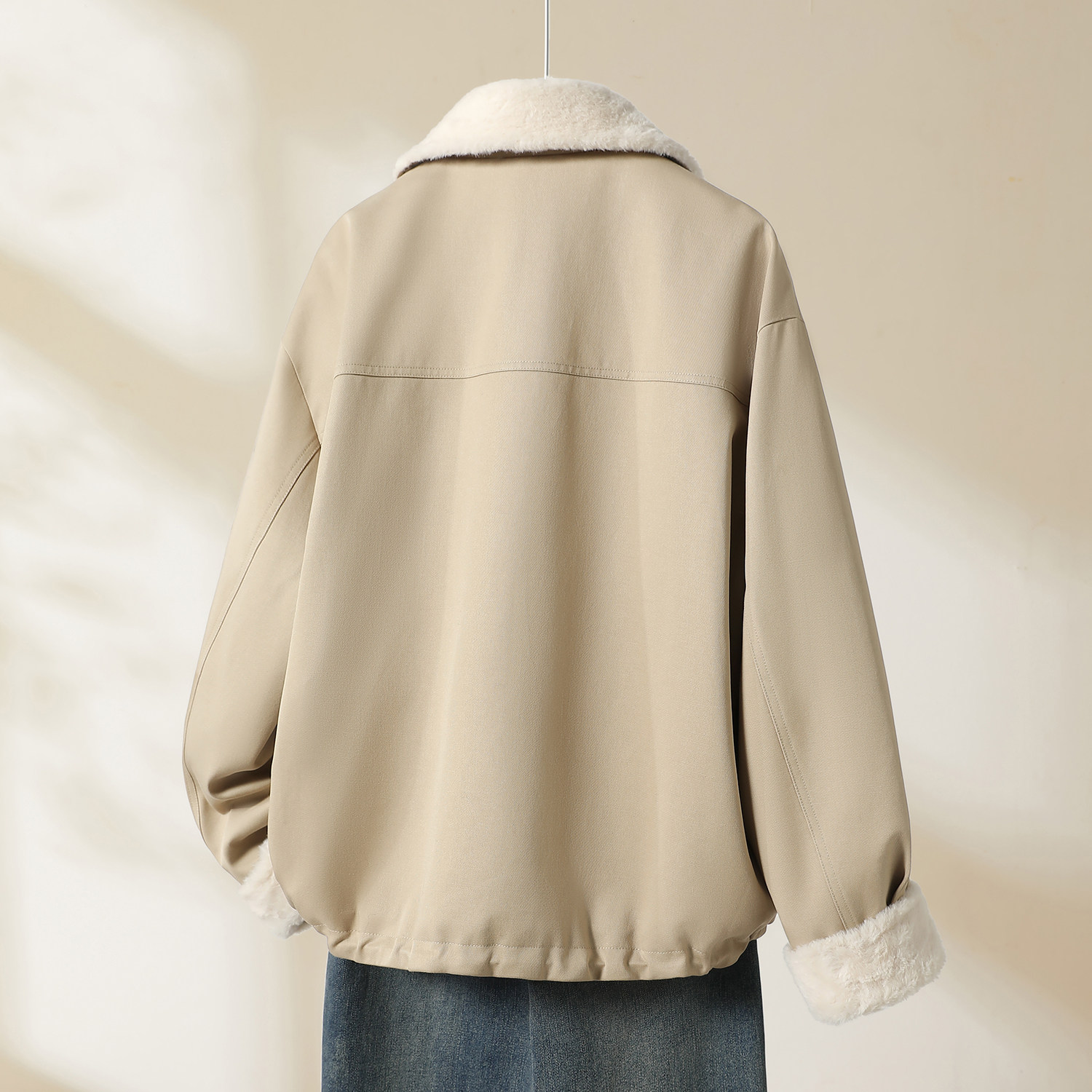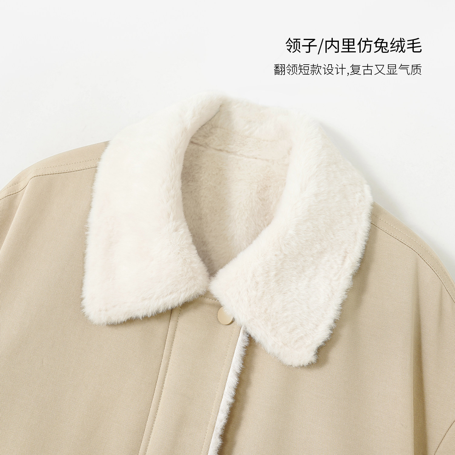 时尚 YBAI 新款 25冬季 保暖简约百搭翻领加厚派克服上衣外套女 亦白