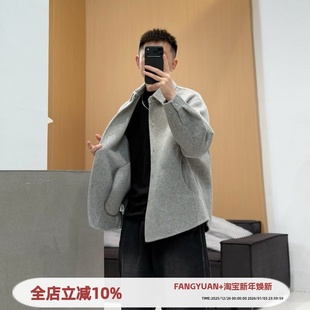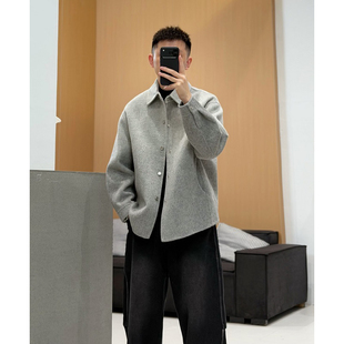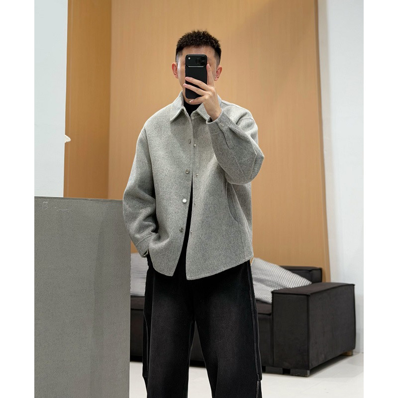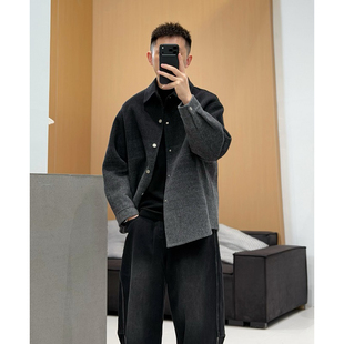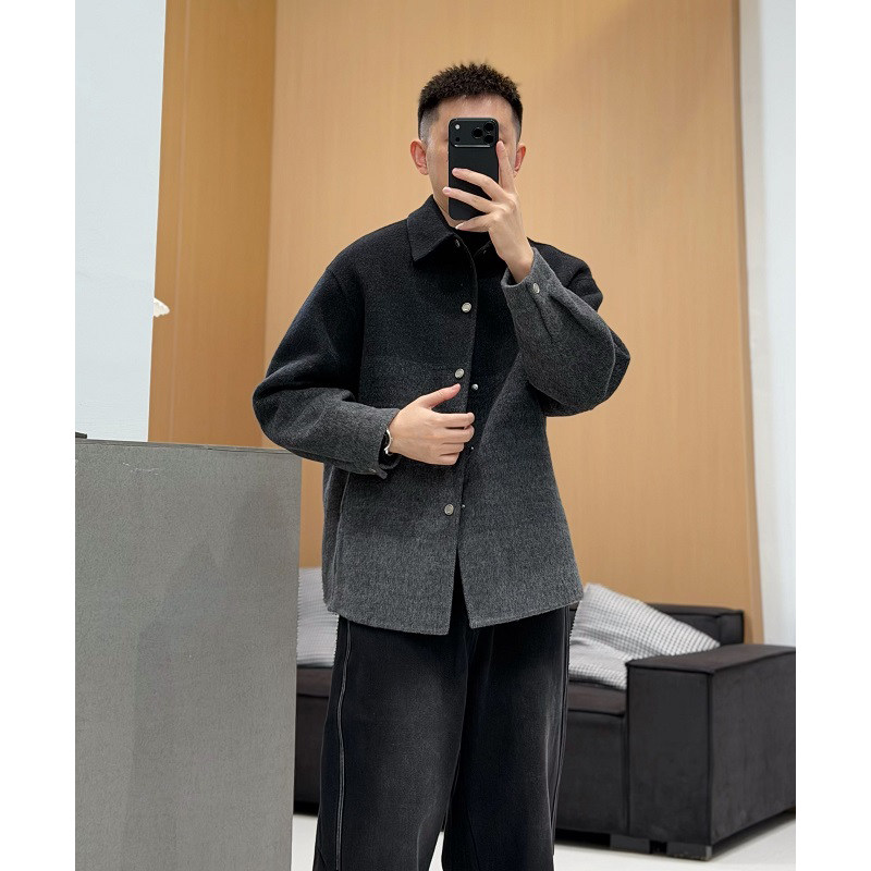 冬季 式 男士 毛呢大衣高级感渐变色衬衫 翻领保暖外套潮 短款 2025新款