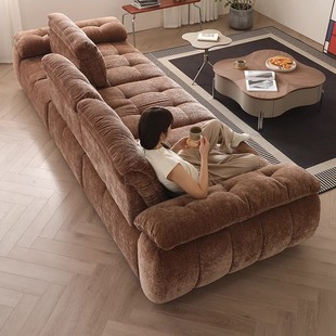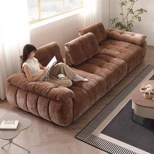 雪尼尔绒中古风功能可调节移动靠背全拆洗布艺云漫沙发客厅直排
