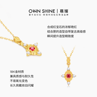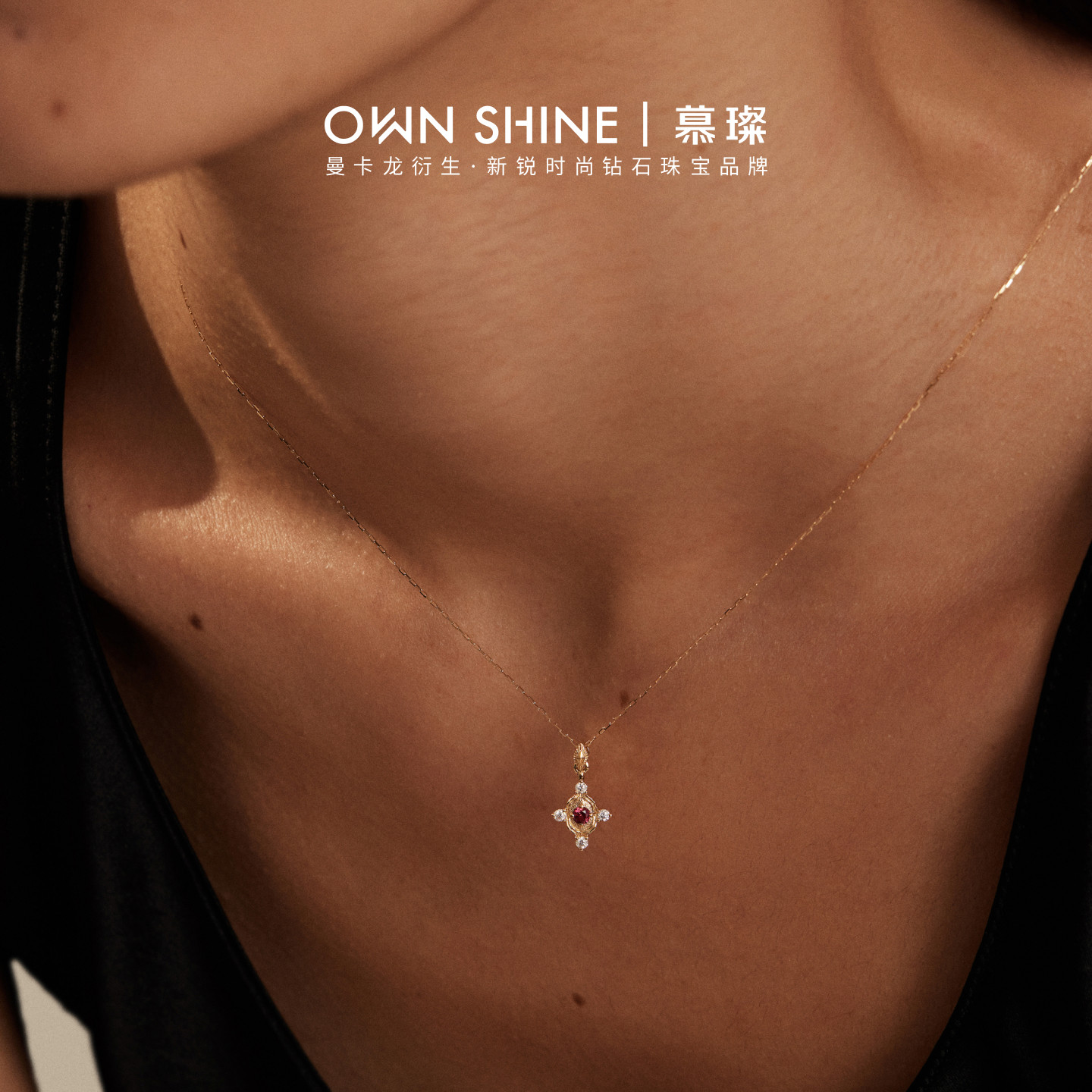 慕璨幸运之匣18k金合成红宝石培育钻石项链 慕璨曼卡龙 OWN SHINE