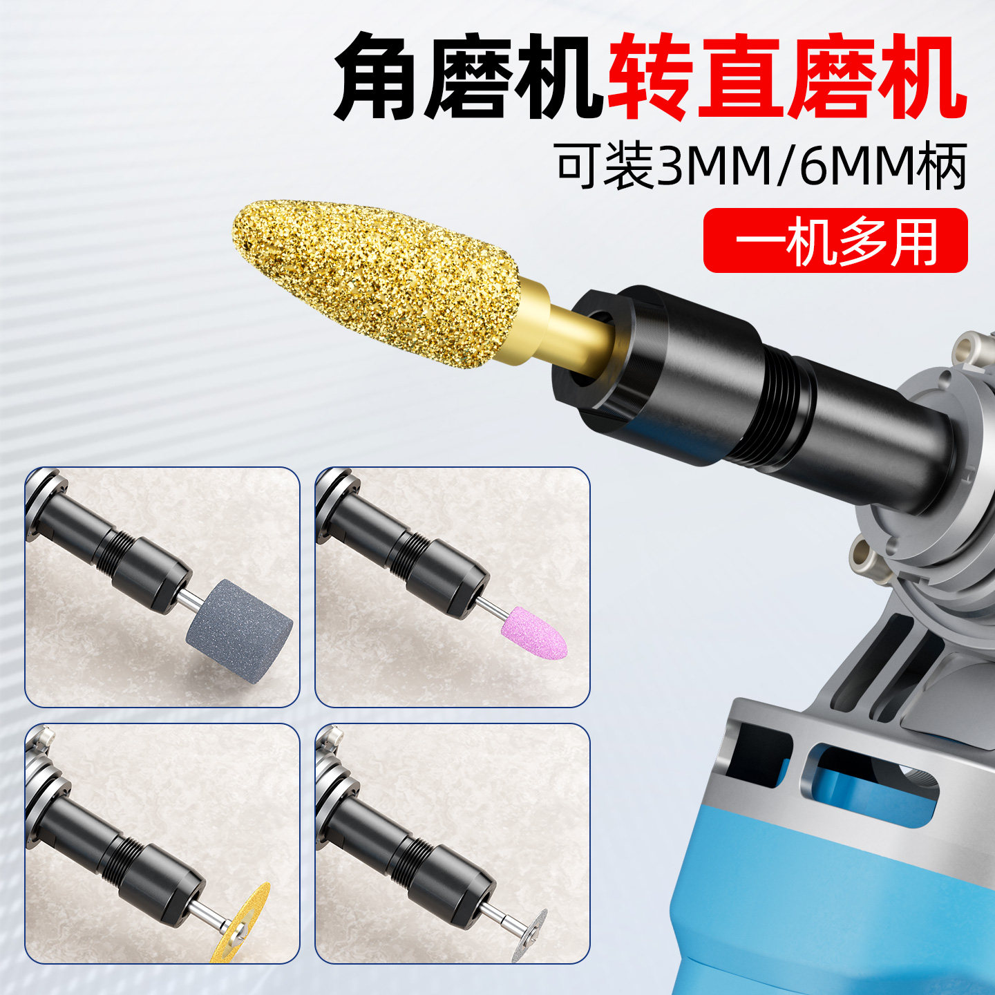 蓝胜角磨机改直磨转换头磨光机变电磨夹头打磨雕刻工具配件大全