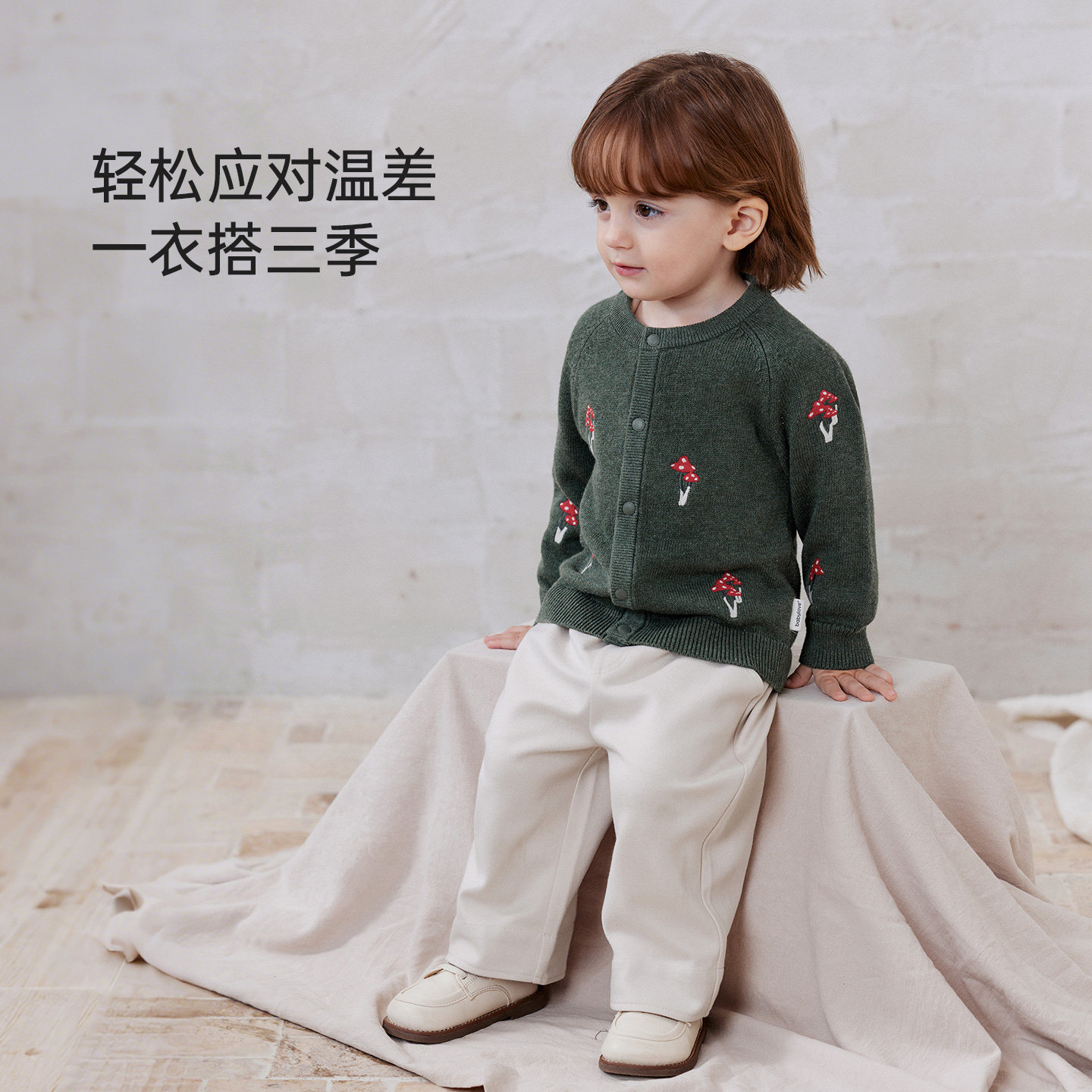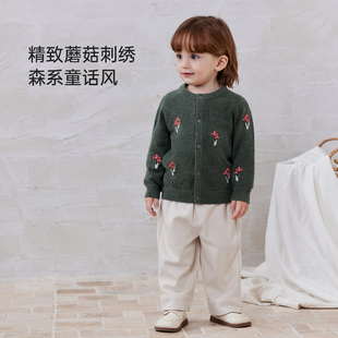 babylove婴幼儿针织外套秋冬刺绣外出保暖开衫 百搭男女宝宝毛衣