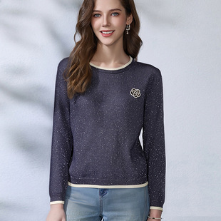 新款 羊毛薄针织衫 时尚 宽松显瘦长袖 ECM6361 女士羊毛衫 2025年秋季