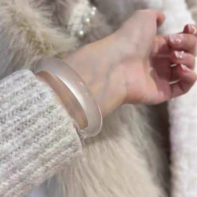 天然高冰透白月光玛瑙荔枝冻玉髓玉手镯马料香槟翡翠平安镯送女友