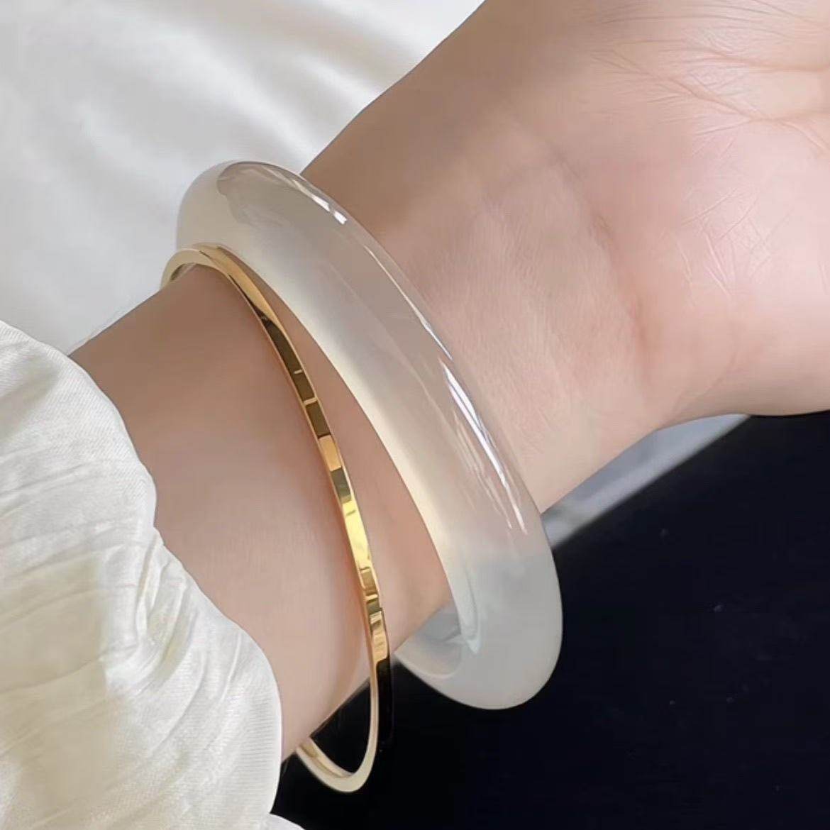 周大生白月光白月岚玉髓手镯天然新中式 叮当玉镯子送女友新年礼物
