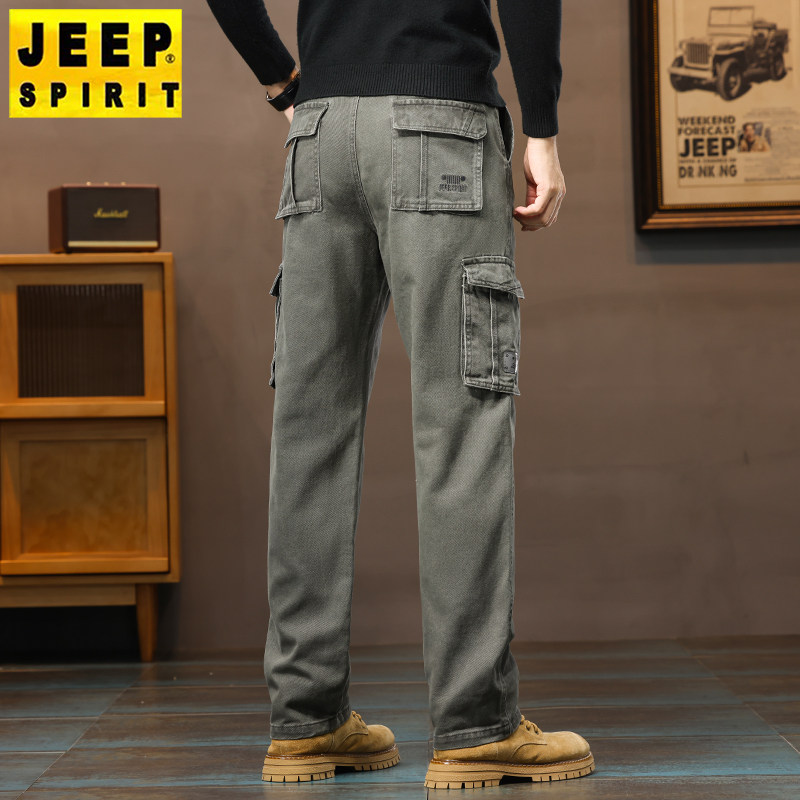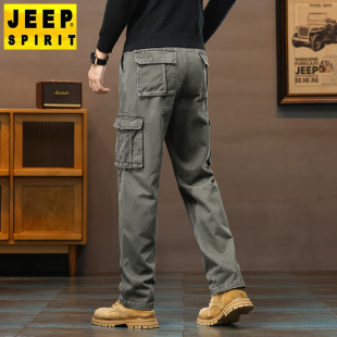 大码 男士 宽松长裤 JEEP吉普工装 子男裤 厚款 直筒纯棉休闲裤 秋冬 裤