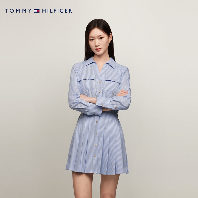 连衣裙 商务气质休闲通勤条纹收腰显瘦宽松衬衫 Tommy春夏女装 时尚