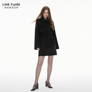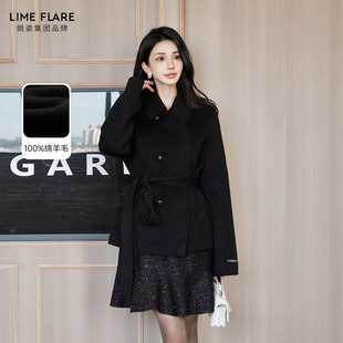 胖mm特大码 毛呢外套 黑色赫本风呢子大衣女秋冬高级感慵懒风中长款