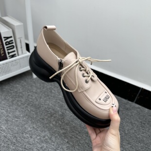 百搭厚底防滑乐福鞋 出口外贸侧拉链jk小皮鞋 女英伦风圆头系带时尚