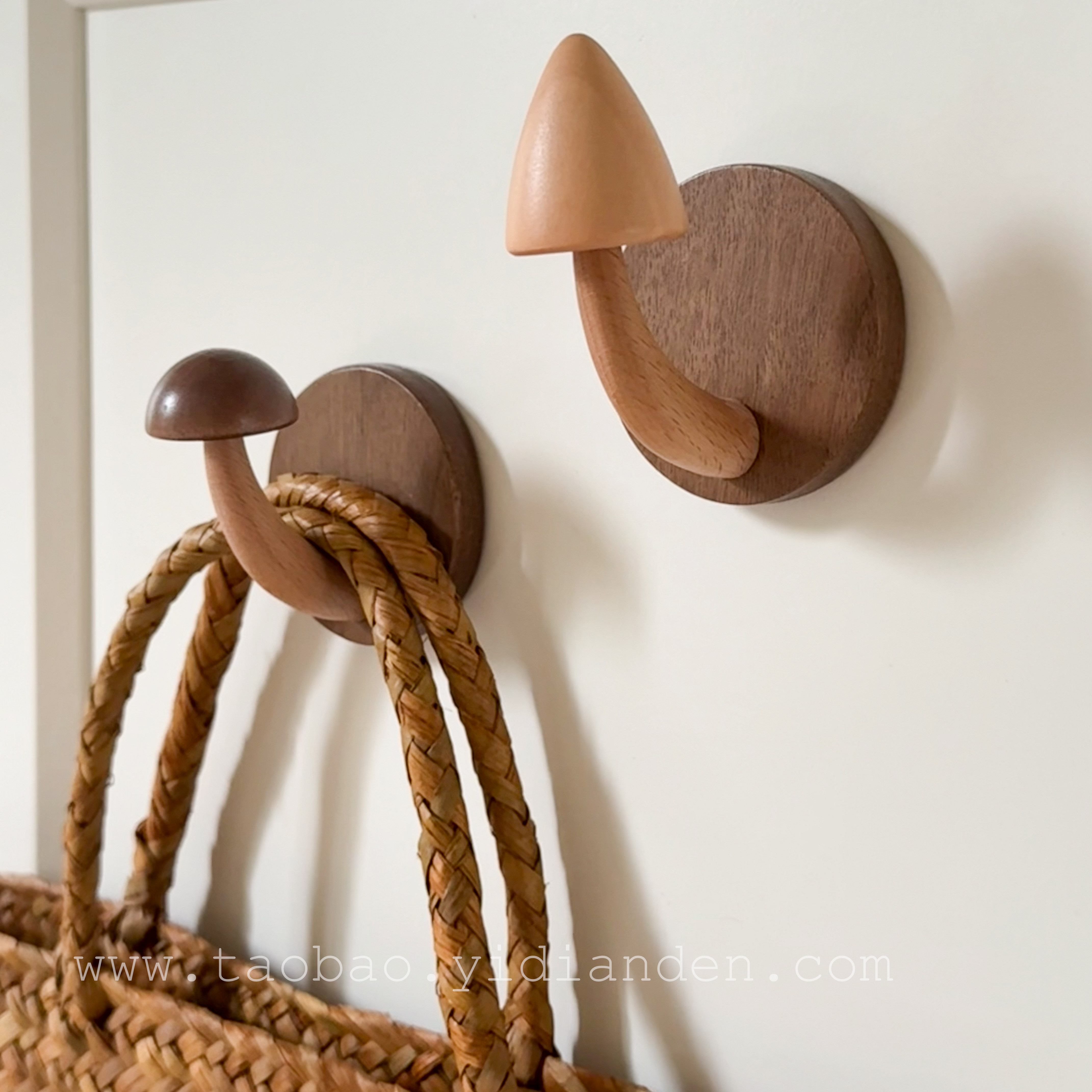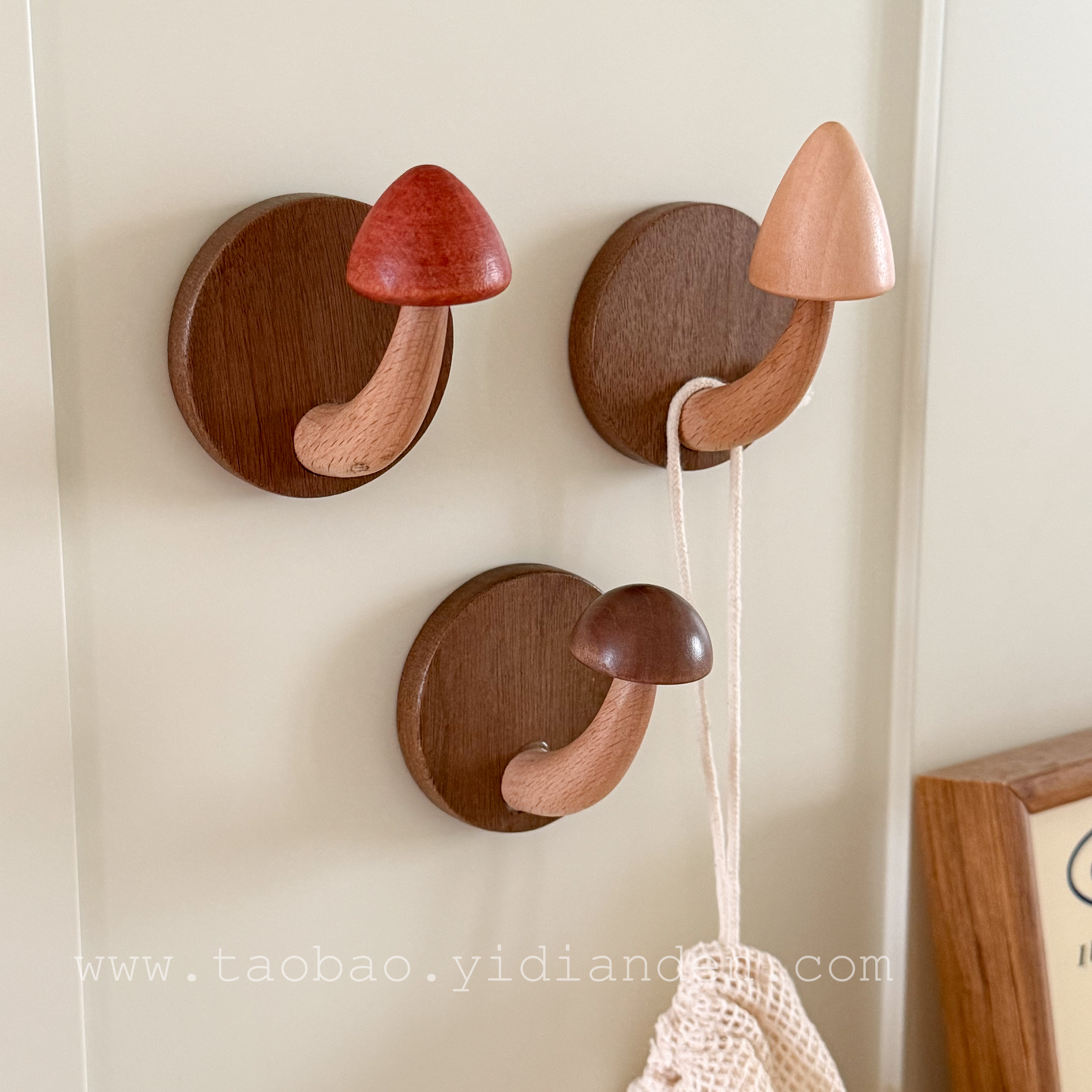 蘑菇挂钩可爱创意ins实木蘑菇免打孔玄关北欧衣帽钩卧室宿舍门后