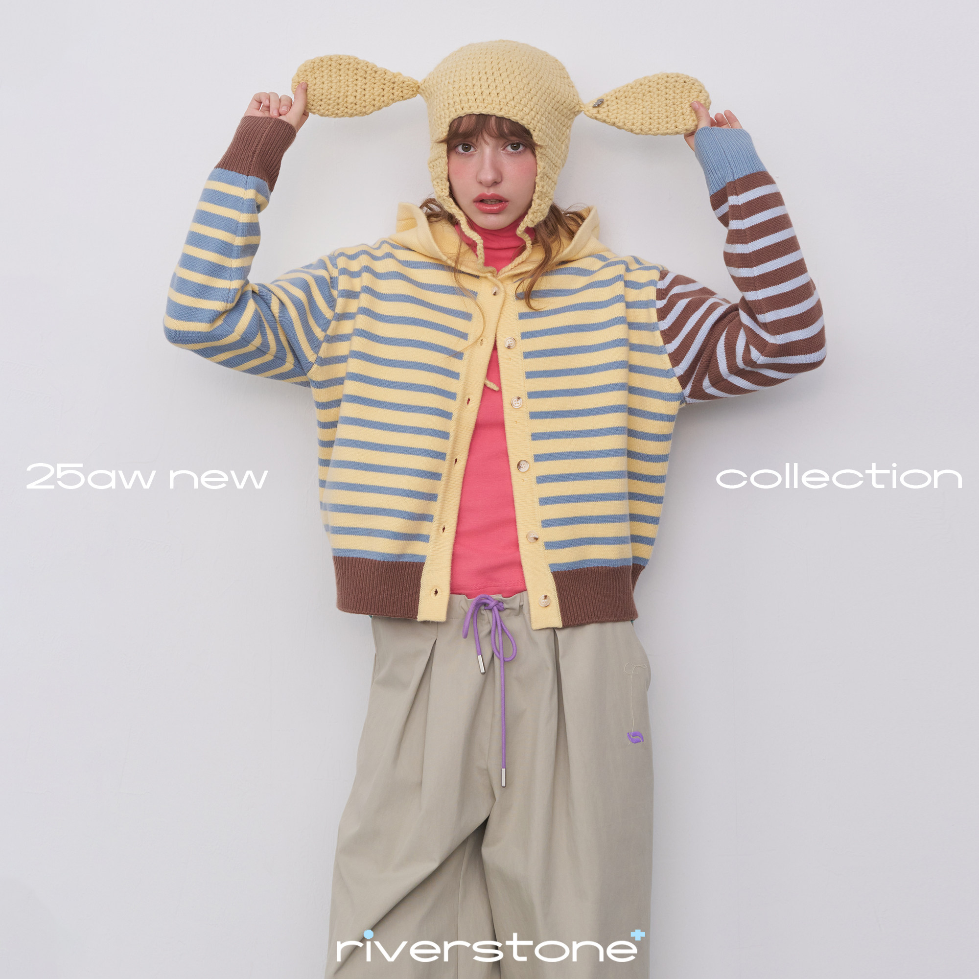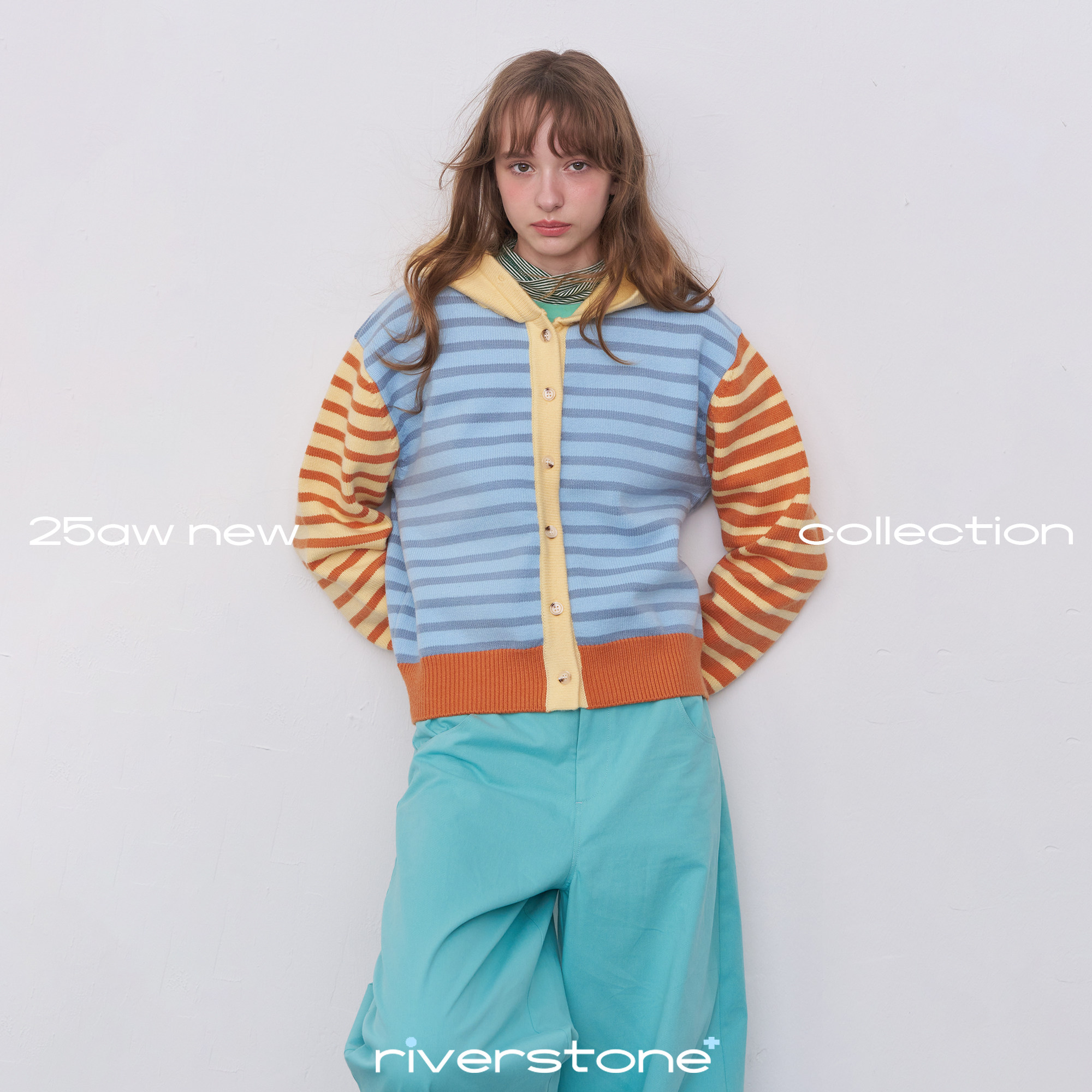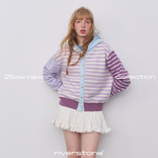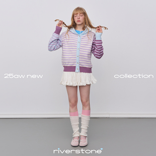 螺纹收腰毛衣 多巴胺条纹拼色针织连帽外套女冬季 riverstone plus
