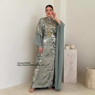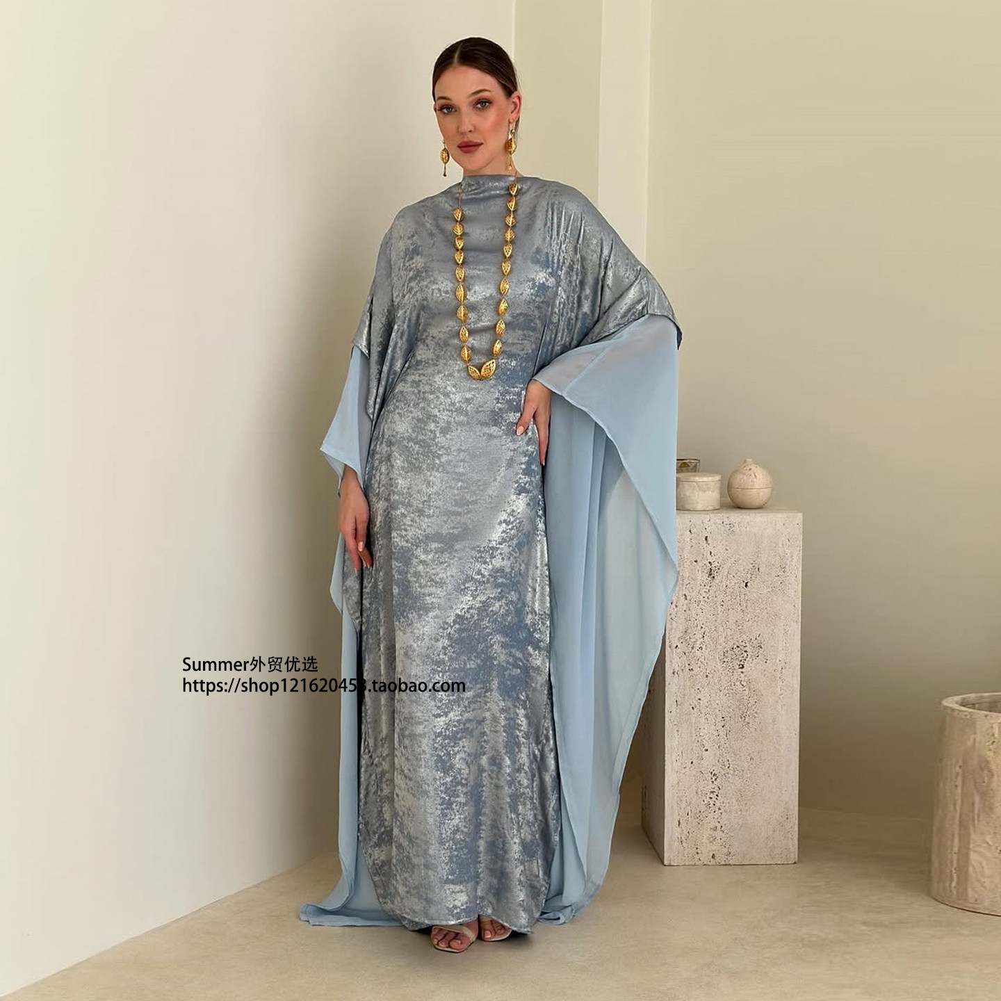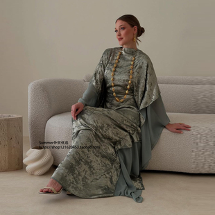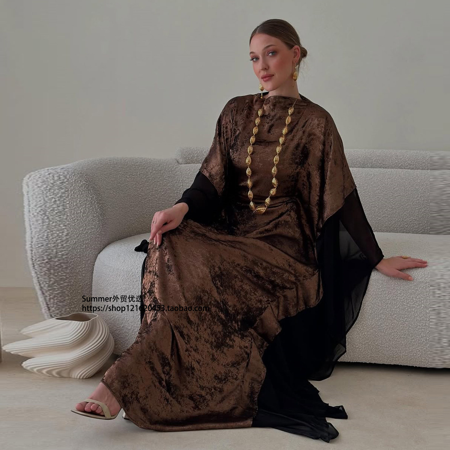dress robe 中东套头罩衫 长袍烫金拼接雪纺内收腰连衣裙女Chiffon