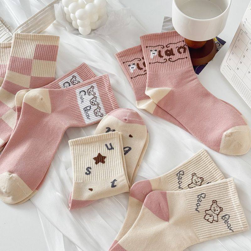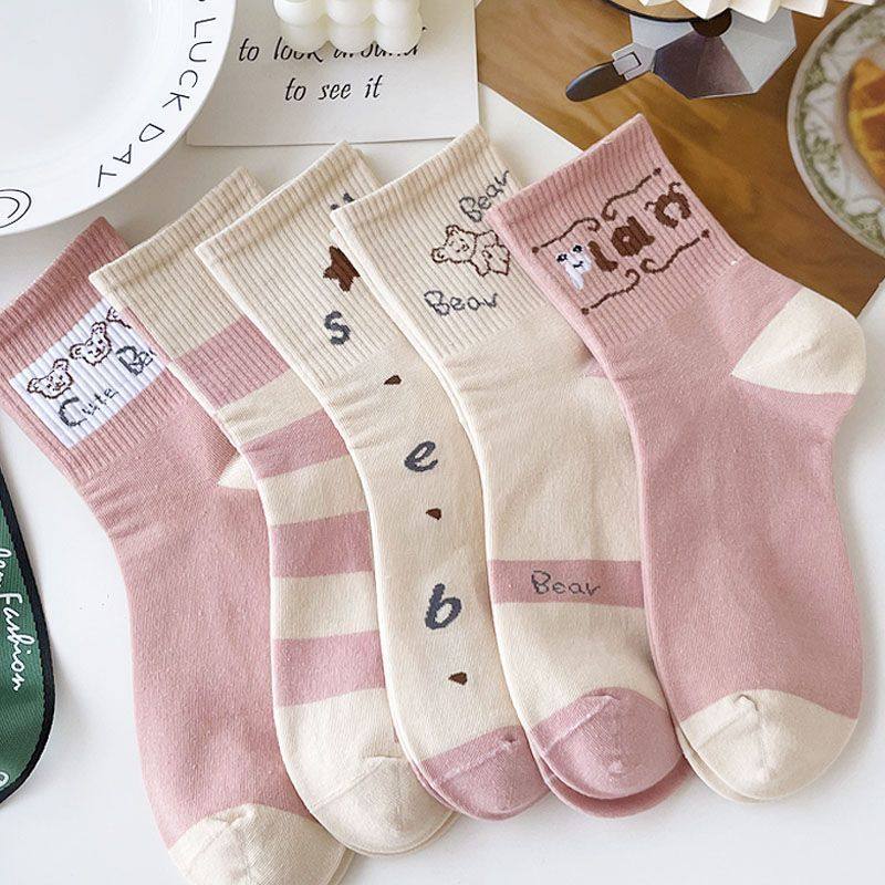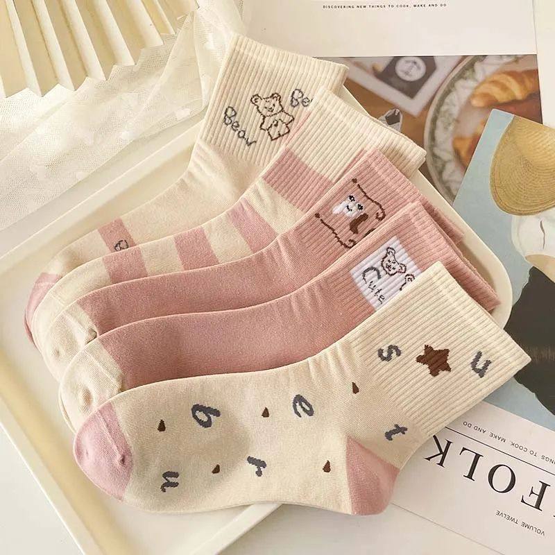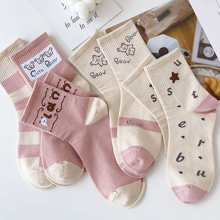 袜子女中筒袜韩版 高帮长筒袜女士袜 学生可爱卡通泰迪熊袜秋冬冬季