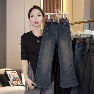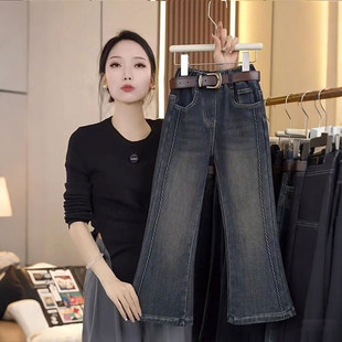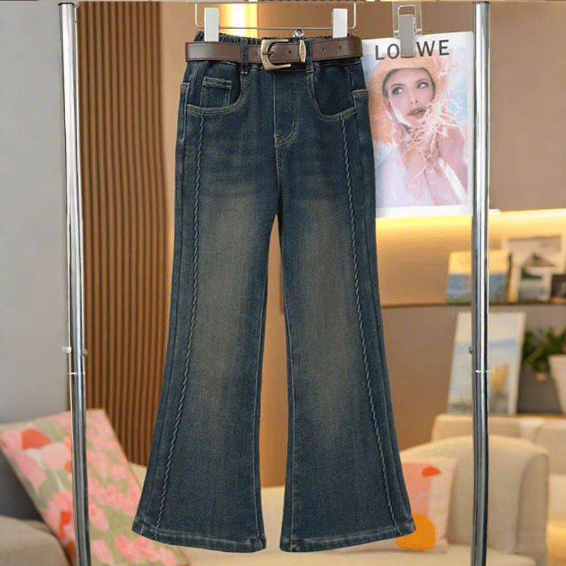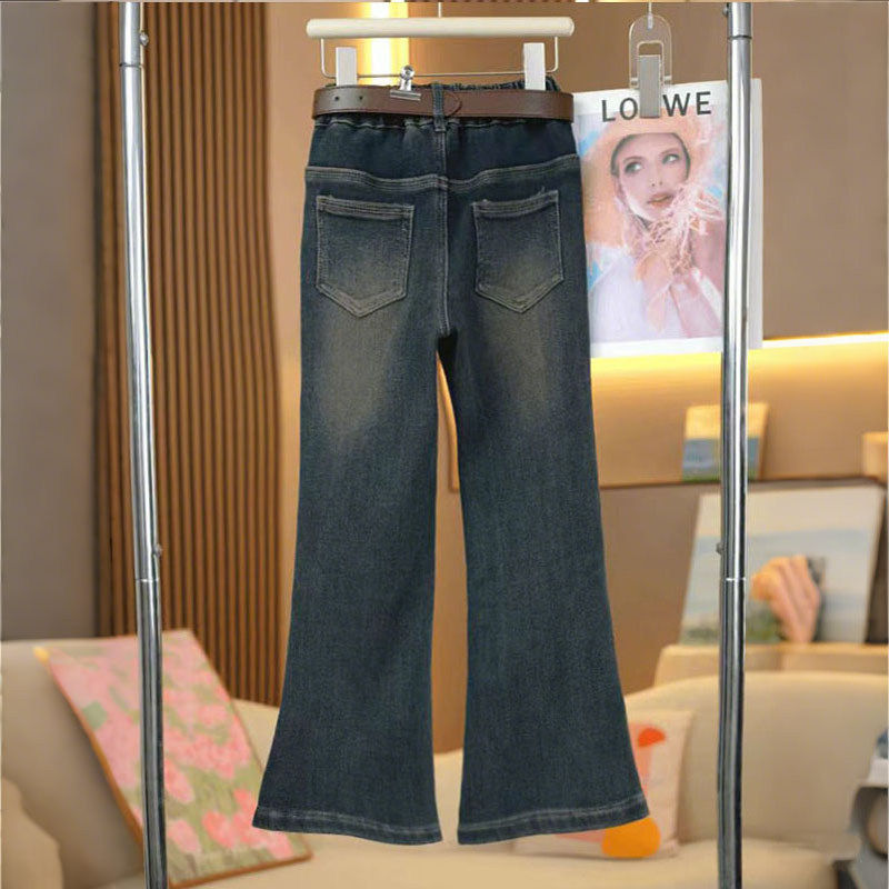 大童裤 左西女童加绒牛仔裤 春秋2025新款 儿童弯刀裤 子 防褪色秋冬款
