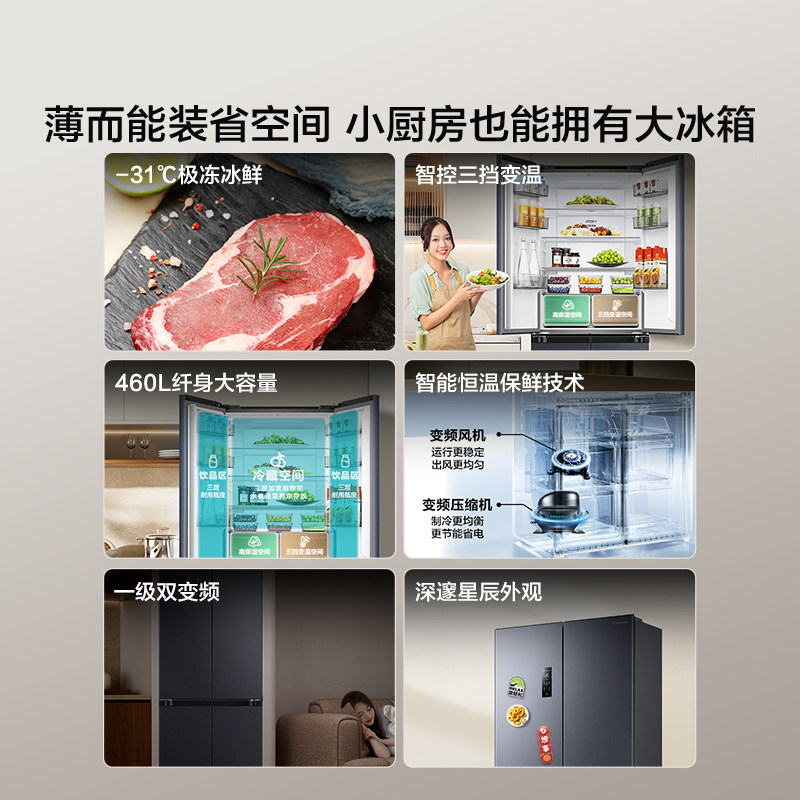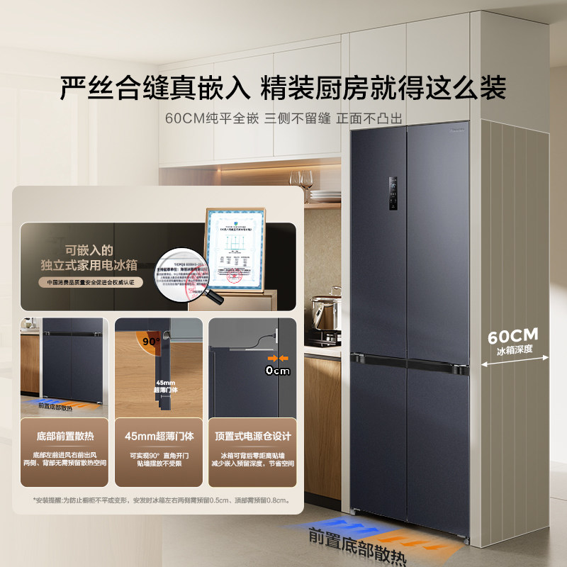 海信460零嵌入式 冰箱十字门四门60cm超薄零嵌家用换新补贴