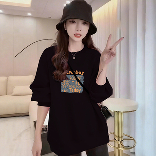 加绒韩版 秋冬新款 遮屁股女装 卫衣休闲宽松显瘦中长款 上衣 圆领长袖
