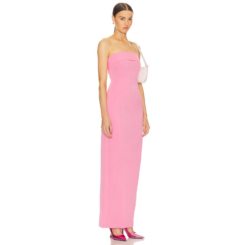 Helsa欧美性感抹胸连衣裙女修身 新品 裹胸后开叉长裙REVOLVE 春季