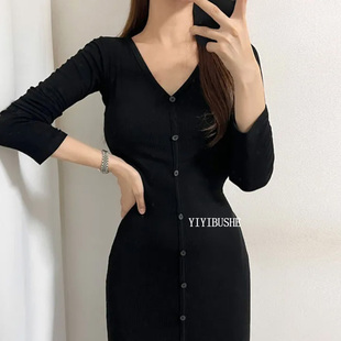 气质舒适有垂感显身材长袖 PO203高级感女人味 连衣裙 正品 韩国代购