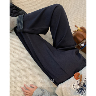 格子拼布卷边设计慵懒百搭阔腿休闲长裤 复古玩家 AMUM孕妇装