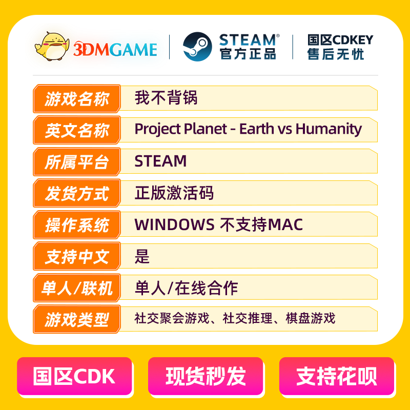 激活码 国区现货 我不背锅 Planet CDKEY秒发 Project Steam正版