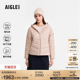 AIGLE艾高女士羽绒服防泼水羽绒衣轻量连帽保暖外套25年秋季 新品